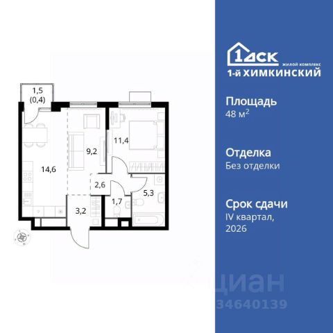 Прямая продажа от застройщика! Жилой Комплекс класса Комфорт. Продаётся 2-к квартира номер 91 общей площадью 48.4 кв.м. на 14-м этаже 17 этажного здания. Без отделки. Особенности квартиры: - Линейная планировка - максимальная функциональность и удобство. - Просторная ванная - место для расслабления и уединения. - Евроформат - просторное и удобное жилье с отличной планировкой. - Ниша под шкаф - компактное и удобное место для вещей. - Балкон - открытое пространство для отдыха. Информация о комплексе: Квартал класса комфорт плюс, где современное городское пространство граничит с удивительной природой вокруг. 1-й Химкинский расположен на территории в 102 га и органично вписан в природное окружение Химкинского леса и канала им. Москвы. В проекте предусмотрена богатая коммерческая инфраструктура с собственным торговым центром, общеобразовательные учреждения и социальные объекты. Изюминкой жилого комплекса будут спортивно-оздоровительный комплекс с термами и SPA и семейный парк развлечений. Транспортная доступность: ЖК "1-й Химкинский" дает возможность выбрать любой способ передвижения как до города, так и до самых разных объектов, которые могут представлять интерес для его жителей. Не важно, какой способ передвижения вы предпочитаете, успевать всегда и везде можно вне зависимости от выбора транспорта. - 8 мин. пешком (800 м) до остановки "Золотая Арка" -10 мин пешком (1 км) до остановки "Поворот на Ивакино" Внутренняя инфраструктура: - Безопасность: закрытые дворы без машин, безбарьерная среда и сквозные подъезды, камеры на детских площадках с возможностью трансляции на смартфоне - Идеальный отдых в кругу семьи: семейный парк развлечений на территории, торговый центр (2-х этажный) общей площадью более 8 тыс. кв. м с фудкортом - Образование: 3 детских сада и современная муниципальная школа на 2450 мест - Спортивная среда: закольцованный веломаршрут с навигацией, спортивный комплекс с термами, закрытый тренажерный зал и зоны ворк-аута - Социальные объекты: поликлиника со станцией скорой помощи, пожарное депо - Подземный паркинг и кладовые помещения на -1 этаже, станция техобслуживания и автомойка на территории