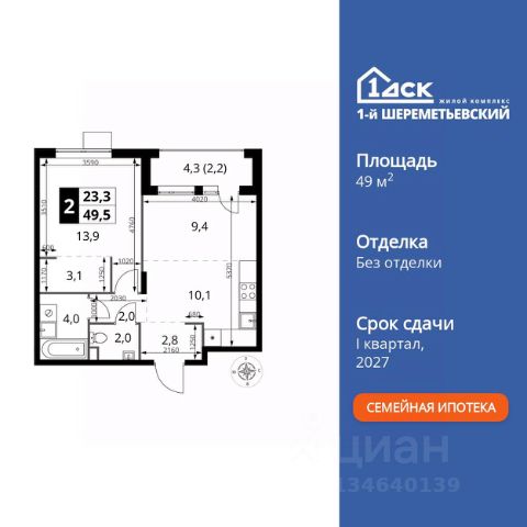 ДОПОЛНИТЕЛЬНАЯ СКИДКА ДО 10% В ОФИСЕ ПРОДАЖ! Прямая продажа от застройщика! Жилой Комплекс класса Комфорт Плюс. Продаётся 2-к квартира номер 328 общей площадью 49.2 кв.м. на 14-м этаже 17 этажного здания. Без отделки. Особенности квартиры: - Просторная спальня, в которой можно разместить большую кровать. - Распашная планировка - отличное сочетание удобства и свободы. - Раздельный санузел - больше удобства для всех членов семьи. - Евроформат - просторное и удобное жилье с отличной планировкой. - Гибкая планировка - создайте пространство по своему вкусу. - Можно оборудовать рабочее место - комфорт для работы и учёбы. - Кухня-гостиная - идеальное пространство для встреч с близкими. - Возможность добавить спальное место - дополнительный комфорт для гостей. - Гардеробная - удобство для хранения и организации вещей. - Ниша под шкаф - компактное и удобное место для вещей. - Лоджия - уютное место для отдыха и тишины. Информация о комплексе: ЖК 1-й Шереметьевский расположен в самом центре Подрезково, от него всего 6 минут пешком до одноименной станции ж/д и планируемой к открытию МЦД-3. В комплексе яркие и уютные, лобби, большая колясочная, лапомойка. Благодаря гостевому санузлу на 1 этаже прогулки станут по-настоящему долгими. Два лифта пассажирский и грузовой.Во всех корпусах 1-го Шереметьевского там устроены кладовые, а в корпусах 3-5 есть подземный паркинг. В ЖК 1-й Шереметьевский разнообразие площадей и планировок. Большие кухни-гостиные: в них два окна или больше. Во всех квартирах площадью от 40 кв.м. и выше спроектировано 2 санузла. Большие остекленные лоджии с отделкой. Система Умная квартира, реализованная в 1-м Шереметьевском. В каждой квартире установлены датчики протечек и запорные вентили с электроприводом, которые самостоятельно перекрывают воду в случае аварии. Мобильное приложение управляет группами электропотребителей: даже если вы забыли утюг включенным, можно обесточить его дистанционно. Транспортная доступность: - Общественный транспорт: До ближайших станций метро Планерной и Войковской около 40-50 минут на автобусе. 6 минут до ЖД станции Подрезково (МЦД-3) - Личный автотранспорт: Удобный выезд на Ленинградское шоссе позволяет быстро добираться до МКАДа и в центр Москвы, до платной трассы М11 и в аэропорт Шереметьево. 3 минуты до Ленинградского ш. 10 минут до платной трассы М11 15 минут до МКАД 20 минут до ст. м Войковская 25 минут до ст. м Планерная Внутренняя инфраструктура: 1-й Шереметьевский не только сокращает время, которое вы будете проводить в дороге. Но и предпринимает многое, чтобы вы меньше ездили и чаще ходили. На первых этажах корпусов разместятся фрешмаркеты и пункты выдачи маркетплейсов, салоны красоты и химчистки, кофейни и пекарни всё, что необходимо изо дня в день, но не заслуживает отдельной поездки на машине или такси. В квартале будут построены собственные школа и детский сад. Школа рассчитана на 1100 учеников. В ней будут 25-метровый бассейн и