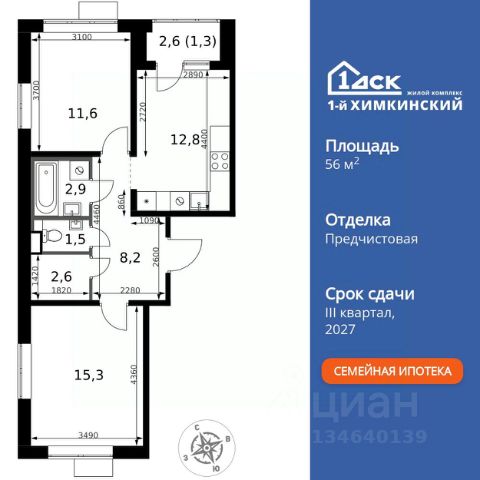 Прямая продажа от застройщика! Жилой Комплекс класса Комфорт Плюс. Продаётся 2-к квартира номер 701 общей площадью 54.6 кв.м. на 15-м этаже 16 этажного здания. Предчистовая отделка. Цена с учётом скидки. Особенности квартиры: - Организуем показ в удобное для вас время! - Мастер-зона с гардеробной. Просторное место для отдыха и удобного хранения вещей. - Просторная спальня, в которой можно разместить большую кровать. - Распашная планировка - отличное сочетание удобства и свободы. - Увеличенная ширина окна/окон - больше света и визуального простора. - Раздельный санузел - больше удобства для всех членов семьи. - Можно оборудовать рабочее место - комфорт для работы и учёбы. - Линейная кухня - функциональность и практичность в одном решении. - Гардеробная - удобство для хранения и организации вещей. - Лоджия - уютное место для отдыха и тишины. Квартира с предчистовой отделкой. Вам не придется заниматься черновыми и трудоёмкими работы, а чистовую отделку и дизайн - сделайте на свой вкус. Информация о комплексе: ЖК "1-й Шереметьевский" в центре Подрезково: 6 минут пешком до ж/д станции и МЦД-3. Яркие лобби, колясочная, лапомойка и гостевой санузел на первом этаже. Два лифта, кладовые и подземный паркинг в корпусах 3-5. Разнообразие планировок с большими кухнями-гостиными, двумя санузлами от 40 кв.м и остеклёнными лоджиями. Умный дом с защитой от протечек и мобильным управлением электроприборами. Транспортная доступность: - Общественный транспорт: До ближайших станций метро Планерной и Войковской около 40-50 минут на автобусе. 6 минут до ЖД станции Подрезково (МЦД-3) - Личный автотранспорт: Удобный выезд на Ленинградское шоссе позволяет быстро добираться до МКАДа и в центр Москвы, до платной трассы М11 и в аэропорт Шереметьево. - 3 минуты до Ленинградского ш. - 10 минут до платной трассы М11 - 15 минут до МКАД - 20 минут до ст. м Войковская - 25 минут до ст. м Планерная Внутренняя инфраструктура: "1-й Шереметьевский": жизнь в шаговой доступности. На первых этажах - магазины со свежими продуктами, кофейни, химчистки и салоны красоты для повседневных нужд без поездок. Собственная школа на 1100 учеников с бассейном и детский сад на 400 малышей с музыкальным залом. Дворы без машин, безопасные игровые площадки и зоны тихого отдыха. Закольцованный веломаршрут с навигацией и парковками. Всё для комфортной жизни без лишних перемещений. Квартира с предчистовой отделкой - ваш дизайн без черновых работ