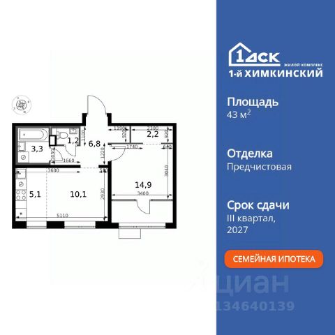БЕЗ ПЕРВОНАЧАЛЬНОГО ВЗНОСА! Прямая продажа от застройщика! Жилой Комплекс класса Комфорт. Продаётся 2-к квартира номер 193 общей площадью 48.4 кв.м. на 15-м этаже 17 этажного здания. Предчистовая отделка. Цена с учётом скидки. Особенности квартиры: - Организуем показ в удобное для вас время! - Угловая планировка - больше пространства для ваших идей. - Окно в ванной - натуральное освещение для уюта и комфорта. - Увеличенное количество окон - дополнительное освещение и свежий воздух. - Раздельный санузел - больше удобства для всех членов семьи. - Евроформат - просторное и удобное жилье с отличной планировкой. - Гардеробная - удобство для хранения и организации вещей. - Ниша под шкаф - компактное и удобное место для вещей. - Просторная лоджия - идеальное место для уютных вечеров. Квартира с предчистовой отделкой. Вам не придется заниматься черновыми и трудоёмкими работы, а чистовую отделку и дизайн - сделайте на свой вкус. Информация о комплексе: "1-й Химкинский": гармония современного города и природы на 102 га у Химкинского леса и канала им. Москвы. Развитая инфраструктура: ТЦ, школы, спорткомплекс с термами и СПА, парк развлечений. Идеальный баланс для жизни в окружении зелени и городского комфорта. Транспортная доступность: ЖК "1-й Химкинский" дает возможность выбрать любой способ передвижения как до города, так и до самых разных объектов, которые могут представлять интерес для его жителей. Не важно, какой способ передвижения вы предпочитаете, успевать всегда и везде можно вне зависимости от выбора транспорта. - 8 мин. пешком (800 м) до остановки "Золотая Арка" -10 мин пешком (1 км) до остановки "Поворот на Ивакино" Внутренняя инфраструктура: Безопасность: закрытые дворы без машин, безбарьерная среда, сквозные подъезды, камеры на детских площадках с трансляцией на смартфон. Отдых: семейный парк развлечений, двухэтажный ТЦ 8 000 м² с фудкортом. Образование: 4 детских сада, 2 муниципальные школы. Спорт: закольцованный веломаршрут, спорткомплекс с термами, тренажерный зал, воркаут зоны. Инфраструктура: поликлиника со станцией скорой помощи, пожарное депо. Паркинг: подземный паркинг, кладовые на -1 этаже, СТО и автомойка на территории. Квартира с предчистовой отделкой - ваш дизайн без черновых работ