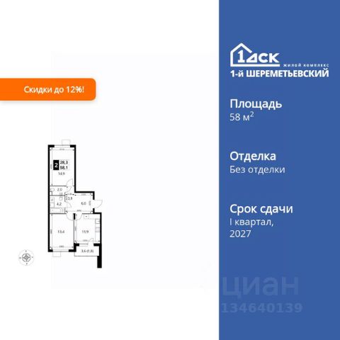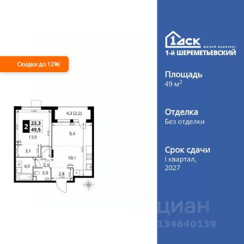 Прямая продажа от застройщика! Жилой Комплекс класса Комфорт. Продаётся 2-к квартира номер 617 общей площадью 43.6 кв.м. на 15-м этаже 16 этажного здания. Отделка Whitebox. Цена с учётом скидки. Особенности квартиры: - Мастер-зона с гардеробной. Просторное место для отдыха и удобного хранения вещей. - Линейная планировка - максимальная функциональность и удобство. - Раздельный санузел - больше удобства для всех членов семьи. - Евроформат - просторное и удобное жилье с отличной планировкой. - Гардеробная - удобство для хранения и организации вещей. - Ниша под шкаф - компактное и удобное место для вещей. - Тёплая лоджия - пространство для отдыха в любое время года. Квартира с предчистовой отделкой (White box). Вам не придется заниматься черновыми и трудоёмкими работы, а чистовую отделку и дизайн - сделайте на свой вкус. Информация о комплексе: Квартал класса комфорт плюс, где современное городское пространство граничит с удивительной природой вокруг. 1-й Химкинский расположен на территории в 102 га и органично вписан в природное окружение Химкинского леса и канала им. Москвы. В проекте предусмотрена богатая коммерческая инфраструктура с собственным торговым центром, общеобразовательные учреждения и социальные объекты. Изюминкой жилого комплекса будут спортивно-оздоровительный комплекс с термами и SPA и семейный парк развлечений. Транспортная доступность: ЖК "1-й Химкинский" дает возможность выбрать любой способ передвижения как до города, так и до самых разных объектов, которые могут представлять интерес для его жителей. Не важно, какой способ передвижения вы предпочитаете, успевать всегда и везде можно вне зависимости от выбора транспорта. - 8 мин. пешком (800 м) до остановки "Золотая Арка" -10 мин пешком (1 км) до остановки "Поворот на Ивакино" Внутренняя инфраструктура: - Безопасность: закрытые дворы без машин, безбарьерная среда и сквозные подъезды, камеры на детских площадках с возможностью трансляции на смартфоне - Идеальный отдых в кругу семьи: семейный парк развлечений на территории, торговый центр (2-х этажный) общей площадью более 8 тыс. кв. м с фудкортом - Образование: 3 детских сада и современная муниципальная школа на 2450 мест - Спортивная среда: закольцованный веломаршрут с навигацией, спортивный комплекс с термами, закрытый тренажерный зал и зоны ворк-аута - Социальные объекты: поликлиника со станцией скорой помощи, пожарное депо - Подземный паркинг и кладовые помещения на -1 этаже, станция техобслуживания и автомойка на территории