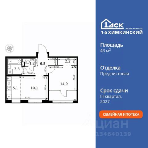 Прямая продажа от застройщика! Жилой Комплекс класса Комфорт. Продаётся 2-к квартира номер 350 общей площадью 48.5 кв.м. на 2-м этаже 17 этажного здания. Чистовая отделка. Цена с учётом скидки. Особенности квартиры: - Организуем показ в удобное для вас время! - Линейная планировка - максимальная функциональность и удобство. - Раздельный санузел - больше удобства для всех членов семьи. - Просторная кухня - место для семейных ужинов и кулинарных экспериментов. - Гардеробная - удобство для хранения и организации вещей. - Тёплая лоджия - пространство для отдыха в любое время года. Квартира с чистовой отделкой. Раскройте свою индивидуальность в создании своего уникального проекта, а трудоемкий ремонт мы возьмем на себя! Вы идете в ногу со временем и предпочитаете современные, универсальные дизайнерские решения? Или вы любитель строгой лаконичной классики? Тогда наши интерьеры придутся вам по душе! Выбирайте то, что ближе лично Вам и реализуйте свои задумки вместе с нами! Информация о комплексе: "1-й Химкинский": гармония современного города и природы на 102 га у Химкинского леса и канала им. Москвы. Развитая инфраструктура: ТЦ, школы, спорткомплекс с термами и СПА, парк развлечений. Идеальный баланс для жизни в окружении зелени и городского комфорта. Транспортная доступность: ЖК "1-й Химкинский" дает возможность выбрать любой способ передвижения как до города, так и до самых разных объектов, которые могут представлять интерес для его жителей. Не важно, какой способ передвижения вы предпочитаете, успевать всегда и везде можно вне зависимости от выбора транспорта. - 8 мин. пешком (800 м) до остановки "Золотая Арка" -10 мин пешком (1 км) до остановки "Поворот на Ивакино" Внутренняя инфраструктура: Безопасность: закрытые дворы без машин, безбарьерная среда, сквозные подъезды, камеры на детских площадках с трансляцией на смартфон. Отдых: семейный парк развлечений, двухэтажный ТЦ 8 000 м² с фудкортом. Образование: 4 детских сада, 2 муниципальные школы. Спорт: закольцованный веломаршрут, спорткомплекс с термами, тренажерный зал, воркаут зоны. Инфраструктура: поликлиника со станцией скорой помощи, пожарное депо. Паркинг: подземный паркинг, кладовые на -1 этаже, СТО и автомойка на территории. Квартира с чистовой отделкой: ваш стиль без ремонта. Выбирайте современный дизайн или классику - мы воплотим ваши идеи. Готовые интерьеры для уникального дома.