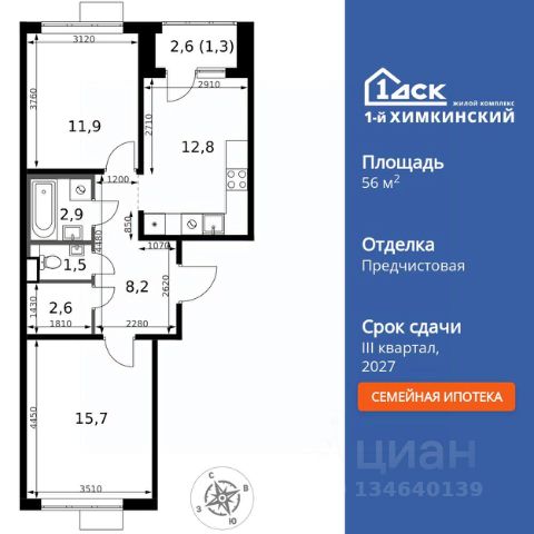 Продается двухкомнатная квартирав жилом комплексе комфорт класса "Химки Тайм" площадью 48.91 кв.м на 4 этаже 20 этажного дома. Квартира с полной отделкой, окна выходят во двор и на улицу. Прекрасный выбор для первой квартиры или инвестиций. Комфортные квартиры по комфортной цене! • Скидки на квартиры до 17% (стоимость квартиры в карточке указана с учетом скидки). • Семейная ипотека без дополнительных комиссий • IT ипотека без дополнительных комиссий • Квартиры "под ключ", сдаются с чистовой отделкой, в светлых и темных тонах на ваш выбор. • Точечная застройка с готовым ремонтом: выбирайте дом, где слышно птиц, а не стройку. Живите ДОМА, а не на стройплощадке. • Бесплатный наземный паркинг грамотное планирование потоков машин и пешеходов позволяют сделать дом удобным для всех. Не нужно переплачивать за подземный гараж. • Прекрасный выбор для первой квартиры или инвестиций. В 20252027 недалеко будет запущен Индустриальный парк "Молжаниново" технологичный объект, который станет еще одним катализатором развития района, предоставит рабочие места высококвалифицированным специалистам и подстегнёт спрос на покупку и аренду квартир. Успейте вложиться по выгодной цене. До центра Москвы на учебу, работу и по любому поводу — это быстро! • 5 мин пешком до скоростной линии МЦД-3 "Молжаниново". • От 30 мин на автобусе или маршрутке до ст.м. "Сходненская", "Речной вокзал". Остановка общественного транспорта "Филино" около ЖК. • На автомобиле удобный выезд на Ленинградское шоссе: до центра Москвы — 40 минут, до международного аэропорта Шереметьево — 20 минут. В состав чистовой отделки входит всё, что нужно для комфорта. Вкладывайте в себя и в детей, а не в ремонт! • Выравнивание полов, стен и потолков • Покрытие полов ламинатом • Поклейка обоев • Монтаж натяжных потолков с установкой светильников • Установка межкомнатных дверей • Установка радиаторов отопления • Выкладывание плиточного "фартука" на кухне • Установка водопроводных и канализационных труб в "мокрой зоне" на кухне • Укладывание плитки в ванной комнате • Установка сантехники • Установка счетчиков • Разводка электросети • Монтаж розеток, выключателей Архитектура на многие десятилетия! • Дома строятся по монолитной технологии с вентилируемыми фасадами. В квартирах будет комфортный микроклимат в любой сезон, а корпуса сохранят достойный внешний вид в течение долгого времени. • В каждом корпусе один подъезд и 3 лифта это не человейник. • В каждом подъезде есть отдельная комната для хранения спортивного оборудования. Инфраструктура на территории качественный дом с понятной "начинкой". • На первых этажах расположатся магазины, салоны красоты и кафе • Внутри ЖК будет муниципальный детский сад • 2 спортивные площадки • 2 площадки для отдыха взрослого населения • 4 детские игровые площадки Собственный паркинг ваша машина около вашего дома. • В ЖК своя бесплатная наземная автостоянка на 210 машиномест Окружение выбирайте ЖК,