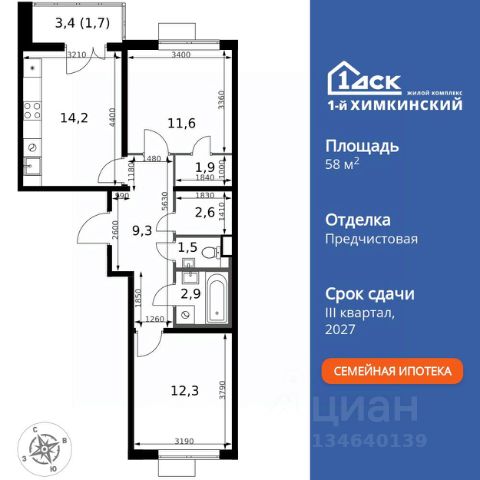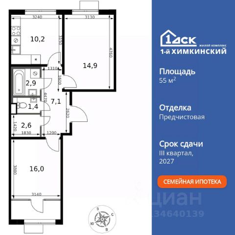 БЕЗ ПЕРВОНАЧАЛЬНОГО ВЗНОСА! ТОЛЬКО 4 ДНЯ ДО 10.02 • Дополнительная скидка 10% • Ставка 10% по стандартной ипотеке для всех без наценок • Ставка 3,5% по семейной ипотеке Успейте купить выгодно! Прямая продажа от застройщика! Жилой Комплекс класса Комфорт. Продаётся 2-к квартира номер 40 общей площадью 46 кв.м. на 4-м этаже 17 этажного здания. Отделка Whitebox. Цена с учётом скидки. Особенности квартиры: - Угловая планировка - больше пространства для ваших идей. - Окно в ванной - натуральное освещение для уюта и комфорта. - Увеличенное количество окон - дополнительное освещение и свежий воздух. - Раздельный санузел - больше удобства для всех членов семьи. - Евроформат - просторное и удобное жилье с отличной планировкой. - Линейная кухня - функциональность и практичность в одном решении. - Гардеробная - удобство для хранения и организации вещей. - Ниша под шкаф - компактное и удобное место для вещей. - Лоджия - уютное место для отдыха и тишины. Квартира с предчистовой отделкой (White box). Вам не придется заниматься черновыми и трудоёмкими работы, а чистовую отделку и дизайн - сделайте на свой вкус. Информация о комплексе: Квартал класса комфорт плюс, где современное городское пространство граничит с удивительной природой вокруг. 1-й Химкинский расположен на территории в 102 га и органично вписан в природное окружение Химкинского леса и канала им. Москвы. В проекте предусмотрена богатая коммерческая инфраструктура с собственным торговым центром, общеобразовательные учреждения и социальные объекты. Изюминкой жилого комплекса будут спортивно-оздоровительный комплекс с термами и SPA и семейный парк развлечений. Транспортная доступность: ЖК "1-й Химкинский" дает возможность выбрать любой способ передвижения как до города, так и до самых разных объектов, которые могут представлять интерес для его жителей. Не важно, какой способ передвижения вы предпочитаете, успевать всегда и везде можно вне зависимости от выбора транспорта. - 8 мин. пешком (800 м) до остановки "Золотая Арка" -10 мин пешком (1 км) до остановки "Поворот на Ивакино" Внутренняя инфраструктура: - Безопасность: закрытые дворы без машин, безбарьерная среда и сквозные подъезды, камеры на детских площадках с возможностью трансляции на смартфоне - Идеальный отдых в кругу семьи: семейный парк развлечений на территории, торговый центр (2-х этажный) общей площадью более 8 тыс. кв. м с фудкортом - Образование: 3 детских сада и современная муниципальная школа на 2450 мест - Спортивная среда: закольцованный веломаршрут с навигацией, спортивный комплекс с термами, закрытый тренажерный зал и зоны ворк-аута - Социальные объекты: поликлиника со станцией скорой помощи, пожарное депо - Подземный паркинг и кладовые помещения на -1 этаже, станция техобслуживания и автомойка на территории