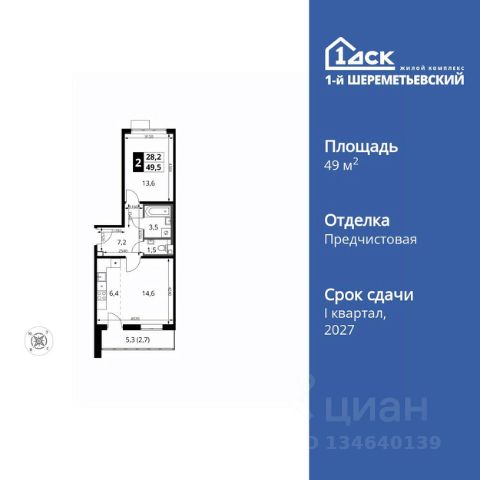 Прямая продажа от застройщика! Жилой Комплекс класса Комфорт Плюс. Продаётся 2-к квартира номер 795 общей площадью 49.5 кв.м. на 4-м этаже 16 этажного дома. Отделка Whitebox. Цена с учётом скидки! Особенности квартиры: - Просторная спальня, в которой можно разместить большую кровать. - Распашная планировка - отличное сочетание удобства и свободы. - Увеличенная ширина окна/окон - больше света и визуального простора. - Раздельный санузел - больше удобства для всех членов семьи. - Евроформат - просторное и удобное жилье с отличной планировкой. - Можно оборудовать рабочее место - комфорт для работы и учёбы. - Кухня-гостиная - идеальное пространство для встреч с близкими. - Линейная кухня - функциональность и практичность в одном решении. - Возможность добавить спальное место - дополнительный комфорт для гостей. - Просторная лоджия - идеальное место для уютных вечеров. Квартира с предчистовой отделкой (White box). Вам не придется заниматься черновыми и трудоёмкими работы, а чистовую отделку и дизайн - сделайте на свой вкус. Информация о комплексе: ЖК 1-й Шереметьевский расположен в самом центре Подрезково, от него всего 6 минут пешком до одноименной станции ж/д и планируемой к открытию МЦД-3. В комплексе яркие и уютные, лобби, большая колясочная, лапомойка. Благодаря гостевому санузлу на 1 этаже прогулки станут по-настоящему долгими. Два лифта пассажирский и грузовой.Во всех корпусах 1-го Шереметьевского там устроены кладовые, а в корпусах 3-5 есть подземный паркинг. В ЖК 1-й Шереметьевский разнообразие площадей и планировок. Большие кухни-гостиные: в них два окна или больше. Во всех квартирах площадью от 40 кв.м. и выше спроектировано 2 санузла. Большие остекленные лоджии с отделкой. Система Умная квартира, реализованная в 1-м Шереметьевском. В каждой квартире установлены датчики протечек и запорные вентили с электроприводом, которые самостоятельно перекрывают воду в случае аварии. Мобильное приложение управляет группами электропотребителей: даже если вы забыли утюг включенным, можно обесточить его дистанционно. Транспортная доступность: - Общественный транспорт: До ближайших станций метро Планерной и Войковской около 40-50 минут на автобусе. 6 минут до ЖД станции Подрезково (МЦД-3) - Личный автотранспорт: Удобный выезд на Ленинградское шоссе позволяет быстро добираться до МКАДа и в центр Москвы, до платной трассы М11 и в аэропорт Шереметьево. 3 минуты до Ленинградского ш. 10 минут до платной трассы М11 15 минут до МКАД 20 минут до ст. м Войковская 25 минут до ст. м Планерная Внутренняя инфраструктура: 1-й Шереметьевский не только сокращает время, которое вы будете проводить в дороге. Но и предпринимает многое, чтобы вы меньше ездили и чаще ходили. На первых этажах корпусов разместятся фрешмаркеты и пункты выдачи маркетплейсов, салоны красоты и химчистки, кофейни и пекарни всё, что необходимо изо дня в день, но не заслуживает отдельной поездки на машине или такси. В квартале будут