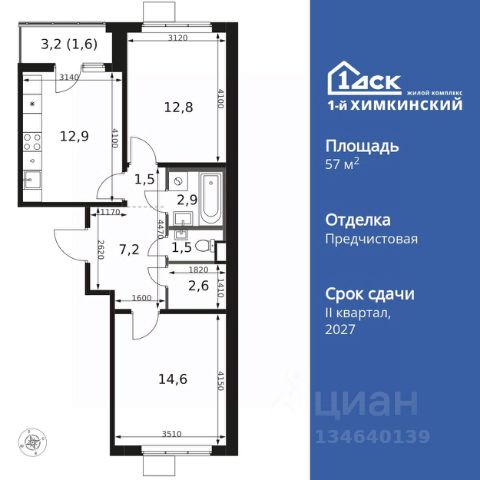 Прямая продажа от застройщика! Жилой Комплекс класса Комфорт. Продаётся 2-к квартира номер 457 общей площадью 45.8 кв.м. на 5-м этаже 14 этажного здания. Отделка Whitebox. Особенности квартиры: - Просторная спальня, в которой можно разместить большую кровать. - Линейная планировка - максимальная функциональность и удобство. - Раздельный санузел - больше удобства для всех членов семьи. - Евроформат - просторное и удобное жилье с отличной планировкой. - Гардеробная - удобство для хранения и организации вещей. - Лоджия - уютное место для отдыха и тишины. Квартира с предчистовой отделкой (White box). Вам не придется заниматься черновыми и трудоёмкими работы, а чистовую отделку и дизайн - сделайте на свой вкус. Информация о комплексе: Квартал класса комфорт плюс, где современное городское пространство граничит с удивительной природой вокруг. 1-й Химкинский расположен на территории в 102 га и органично вписан в природное окружение Химкинского леса и канала им. Москвы. В проекте предусмотрена богатая коммерческая инфраструктура с собственным торговым центром, общеобразовательные учреждения и социальные объекты. Изюминкой жилого комплекса будут спортивно-оздоровительный комплекс с термами и SPA и семейный парк развлечений. Транспортная доступность: ЖК "1-й Химкинский" дает возможность выбрать любой способ передвижения как до города, так и до самых разных объектов, которые могут представлять интерес для его жителей. Не важно, какой способ передвижения вы предпочитаете, успевать всегда и везде можно вне зависимости от выбора транспорта. - 8 мин. пешком (800 м) до остановки "Золотая Арка" -10 мин пешком (1 км) до остановки "Поворот на Ивакино" Внутренняя инфраструктура: - Безопасность: закрытые дворы без машин, безбарьерная среда и сквозные подъезды, камеры на детских площадках с возможностью трансляции на смартфоне - Идеальный отдых в кругу семьи: семейный парк развлечений на территории, торговый центр (2-х этажный) общей площадью более 8 тыс. кв. м с фудкортом - Образование: 3 детских сада и современная муниципальная школа на 2450 мест - Спортивная среда: закольцованный веломаршрут с навигацией, спортивный комплекс с термами, закрытый тренажерный зал и зоны ворк-аута - Социальные объекты: поликлиника со станцией скорой помощи, пожарное депо - Подземный паркинг и кладовые помещения на -1 этаже, станция техобслуживания и автомойка на территории