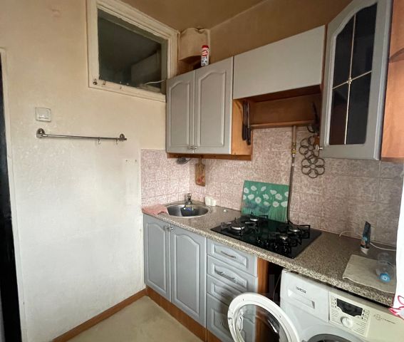 Полы: в комнатах - ламинат, на кухне и в коридоре - линолеум, в санузле - плитка. В квартире остаются покупателю: шкафы в обеих комнатах, холодильник, кухонный гарнитур, плита с духовым шкафом.