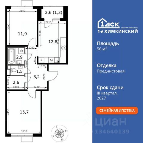 • ИПОТЕКА 10% ДЛЯ ВСЕХ БЕЗ НАЦЕНОК • ДОСТУПНО ПО СЕМЕЙНОЙ ИПОТЕКЕ Прямая продажа от застройщика! Жилой Комплекс класса Комфорт. Продаётся 2-к квартира номер 153 общей площадью 49.9 кв.м. на 6-м этаже 10 этажного здания. Без отделки. Цена с учётом скидки. Особенности квартиры: - Линейная планировка - максимальная функциональность и удобство. - Просторная ванная - место для расслабления и уединения. - Раздельный санузел - больше удобства для всех членов семьи. - Евроформат - просторное и удобное жилье с отличной планировкой. - Линейная кухня - функциональность и практичность в одном решении. - Гардеробная - удобство для хранения и организации вещей. - Ниша под шкаф - компактное и удобное место для вещей. - Лоджия - уютное место для отдыха и тишины. Информация о комплексе: Квартал класса комфорт плюс, где современное городское пространство граничит с удивительной природой вокруг. 1-й Химкинский расположен на территории в 102 га и органично вписан в природное окружение Химкинского леса и канала им. Москвы. В проекте предусмотрена богатая коммерческая инфраструктура с собственным торговым центром, общеобразовательные учреждения и социальные объекты. Изюминкой жилого комплекса будут спортивно-оздоровительный комплекс с термами и SPA и семейный парк развлечений. Транспортная доступность: ЖК "1-й Химкинский" дает возможность выбрать любой способ передвижения как до города, так и до самых разных объектов, которые могут представлять интерес для его жителей. Не важно, какой способ передвижения вы предпочитаете, успевать всегда и везде можно вне зависимости от выбора транспорта. - 8 мин. пешком (800 м) до остановки "Золотая Арка" -10 мин пешком (1 км) до остановки "Поворот на Ивакино" Внутренняя инфраструктура: - Безопасность: закрытые дворы без машин, безбарьерная среда и сквозные подъезды, камеры на детских площадках с возможностью трансляции на смартфоне - Идеальный отдых в кругу семьи: семейный парк развлечений на территории, торговый центр (2-х этажный) общей площадью более 8 тыс. кв. м с фудкортом - Образование: 3 детских сада и современная муниципальная школа на 2450 мест - Спортивная среда: закольцованный веломаршрут с навигацией, спортивный комплекс с термами, закрытый тренажерный зал и зоны ворк-аута - Социальные объекты: поликлиника со станцией скорой помощи, пожарное депо - Подземный паркинг и кладовые помещения на -1 этаже, станция техобслуживания и автомойка на территории