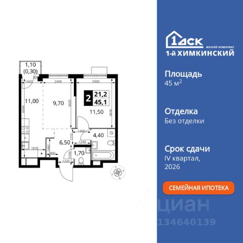 ТОЛЬКО 4 ДНЯ ДО 10.02 • Дополнительная скидка 10% • Ставка 10% по стандартной ипотеке для всех без наценок • Ставка 3,5% по семейной ипотеке Успейте купить выгодно! Прямая продажа от застройщика! Жилой Комплекс класса Комфорт. Продаётся 2-к квартира номер 147 общей площадью 45.1 кв.м. на 6-м этаже 7 этажного здания. Без отделки. Особенности квартиры: - Линейная планировка - максимальная функциональность и удобство. - Евроформат - просторное и удобное жилье с отличной планировкой. - Ниша под шкаф - компактное и удобное место для вещей. - Балкон - открытое пространство для отдыха. Информация о комплексе: Квартал класса комфорт плюс, где современное городское пространство граничит с удивительной природой вокруг. 1-й Химкинский расположен на территории в 102 га и органично вписан в природное окружение Химкинского леса и канала им. Москвы. В проекте предусмотрена богатая коммерческая инфраструктура с собственным торговым центром, общеобразовательные учреждения и социальные объекты. Изюминкой жилого комплекса будут спортивно-оздоровительный комплекс с термами и SPA и семейный парк развлечений. Транспортная доступность: ЖК "1-й Химкинский" дает возможность выбрать любой способ передвижения как до города, так и до самых разных объектов, которые могут представлять интерес для его жителей. Не важно, какой способ передвижения вы предпочитаете, успевать всегда и везде можно вне зависимости от выбора транспорта. - 8 мин. пешком (800 м) до остановки "Золотая Арка" -10 мин пешком (1 км) до остановки "Поворот на Ивакино" Внутренняя инфраструктура: - Безопасность: закрытые дворы без машин, безбарьерная среда и сквозные подъезды, камеры на детских площадках с возможностью трансляции на смартфоне - Идеальный отдых в кругу семьи: семейный парк развлечений на территории, торговый центр (2-х этажный) общей площадью более 8 тыс. кв. м с фудкортом - Образование: 3 детских сада и современная муниципальная школа на 2450 мест - Спортивная среда: закольцованный веломаршрут с навигацией, спортивный комплекс с термами, закрытый тренажерный зал и зоны ворк-аута - Социальные объекты: поликлиника со станцией скорой помощи, пожарное депо - Подземный паркинг и кладовые помещения на -1 этаже, станция техобслуживания и автомойка на территории