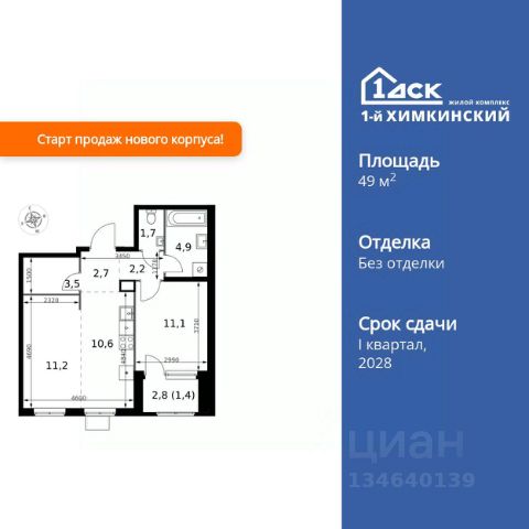 Прямая продажа от застройщика! Жилой Комплекс класса Комфорт. Продаётся 2-к квартира номер 153 общей площадью 49.9 кв.м. на 6-м этаже 10 этажного здания. Без отделки. Цена с учётом скидки. Особенности квартиры: - Организуем показ в удобное для вас время! - Линейная планировка - максимальная функциональность и удобство. - Просторная ванная - место для расслабления и уединения. - Раздельный санузел - больше удобства для всех членов семьи. - Евроформат - просторное и удобное жилье с отличной планировкой. - Линейная кухня - функциональность и практичность в одном решении. - Гардеробная - удобство для хранения и организации вещей. - Ниша под шкаф - компактное и удобное место для вещей. - Лоджия - уютное место для отдыха и тишины. Квартира без отделки. Чистый холст для воплощения интерьера вашей мечты. Информация о комплексе: "1-й Химкинский": гармония современного города и природы на 102 га у Химкинского леса и канала им. Москвы. Развитая инфраструктура: ТЦ, школы, спорткомплекс с термами и СПА, парк развлечений. Идеальный баланс для жизни в окружении зелени и городского комфорта. Транспортная доступность: ЖК "1-й Химкинский" дает возможность выбрать любой способ передвижения как до города, так и до самых разных объектов, которые могут представлять интерес для его жителей. Не важно, какой способ передвижения вы предпочитаете, успевать всегда и везде можно вне зависимости от выбора транспорта. - 8 мин. пешком (800 м) до остановки "Золотая Арка" -10 мин пешком (1 км) до остановки "Поворот на Ивакино" Внутренняя инфраструктура: Безопасность: закрытые дворы без машин, безбарьерная среда, сквозные подъезды, камеры на детских площадках с трансляцией на смартфон. Отдых: семейный парк развлечений, двухэтажный ТЦ 8 000 м² с фудкортом. Образование: 4 детских сада, 2 муниципальные школы. Спорт: закольцованный веломаршрут, спорткомплекс с термами, тренажерный зал, воркаут зоны. Инфраструктура: поликлиника со станцией скорой помощи, пожарное депо. Паркинг: подземный паркинг, кладовые на -1 этаже, СТО и автомойка на территории. Квартира без отделки - чистый холст для вашего интерьера.