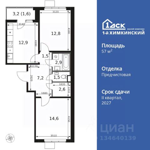 Прямая продажа от застройщика! Жилой Комплекс класса Комфорт. Продаётся 2-к квартира номер 586 общей площадью 56.2 кв.м. на 7-м этаже 16 этажного здания. Отделка Whitebox. Цена с учётом скидки. Особенности квартиры: - Распашная планировка - отличное сочетание удобства и свободы. - Раздельный санузел - больше удобства для всех членов семьи. - Гардеробная - удобство для хранения и организации вещей. - Лоджия - уютное место для отдыха и тишины. Квартира с предчистовой отделкой (White box). Вам не придется заниматься черновыми и трудоёмкими работы, а чистовую отделку и дизайн - сделайте на свой вкус. Информация о комплексе: Квартал класса комфорт плюс, где современное городское пространство граничит с удивительной природой вокруг. 1-й Химкинский расположен на территории в 102 га и органично вписан в природное окружение Химкинского леса и канала им. Москвы. В проекте предусмотрена богатая коммерческая инфраструктура с собственным торговым центром, общеобразовательные учреждения и социальные объекты. Изюминкой жилого комплекса будут спортивно-оздоровительный комплекс с термами и SPA и семейный парк развлечений. Транспортная доступность: ЖК "1-й Химкинский" дает возможность выбрать любой способ передвижения как до города, так и до самых разных объектов, которые могут представлять интерес для его жителей. Не важно, какой способ передвижения вы предпочитаете, успевать всегда и везде можно вне зависимости от выбора транспорта. - 8 мин. пешком (800 м) до остановки "Золотая Арка" -10 мин пешком (1 км) до остановки "Поворот на Ивакино" Внутренняя инфраструктура: - Безопасность: закрытые дворы без машин, безбарьерная среда и сквозные подъезды, камеры на детских площадках с возможностью трансляции на смартфоне - Идеальный отдых в кругу семьи: семейный парк развлечений на территории, торговый центр (2-х этажный) общей площадью более 8 тыс. кв. м с фудкортом - Образование: 3 детских сада и современная муниципальная школа на 2450 мест - Спортивная среда: закольцованный веломаршрут с навигацией, спортивный комплекс с термами, закрытый тренажерный зал и зоны ворк-аута - Социальные объекты: поликлиника со станцией скорой помощи, пожарное депо - Подземный паркинг и кладовые помещения на -1 этаже, станция техобслуживания и автомойка на территории