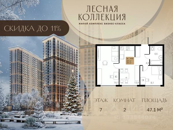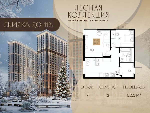 Скидка до 11% при 100% оплате в феврале. Продажа напрямую от застройщика в жилом комплексе Лесная Коллекция! 2-комнатная квартира на 7-этаже, площадью 52.1-квм. Лесная Коллекция это продуманный жилой комплекс для тех, кто хочет жить в комфортной городской среде и при этом быть рядом с природой. Удачное расположение, развитая инфраструктура и закрытая территория делают проект удобным для повседневной жизни. Удобная локация и транспорт • Быстрый выезд на Путилковское шоссе • Близость станции метро "Планерная" • Три железнодорожные станции рядом: Химки, Левобережная, Ховрино • Более 40 автобусных маршрутов Локация позволяет легко добираться как в центр города, так и в соседние районы. Территория и окружение • Соседство с престижным районом Куркино • Закрытая благоустроенная территория без сквозного движения • Пространства для прогулок и занятий спортом • Двор примыкает к лесному массиву • Архитектура комплекса выдержана в сдержанном, респектабельном стиле • До 70% окон ориентированы на парк Квартиры и планировки • Удобные и функциональные планировочные решения • Формат комфорт-класса по разумной цене • Максимум естественного света за счёт удачного расположения корпусов Инфраструктура внутри комплекса • Детский сад на территории на 140 мест • МФЦ для решения повседневных вопросов • Коммерческие помещения на первых этажах • Магазины, кафе и салоны красоты прямо в доме • Собственный паркинг рядом с домом Всё необходимое рядом • 78 муниципальных и 42 частных детских сада • 40 школ, включая гимназии и лицеи • 6 колледжей и техникумов • 5 вузов поблизости • Крупные торговые центры и рынки в удобной доступности О застройщике Проекты застройщика "Град Девелопмент" — это более 600 тыс. кв. м реализованной недвижимости, включая клубные форматы и жильё бизнес-класса. Компания известна качеством строительства и соблюдением сроков.