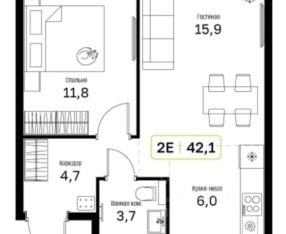 Продается солнечная, светлая 2-комнатная квартира площадью 54,3м², удобной планировки, состоящая из двух изолированных жилых комнат площадью 11,8 и 11,1м² и функциональной комфортной кухни-гостиной 17,3м².