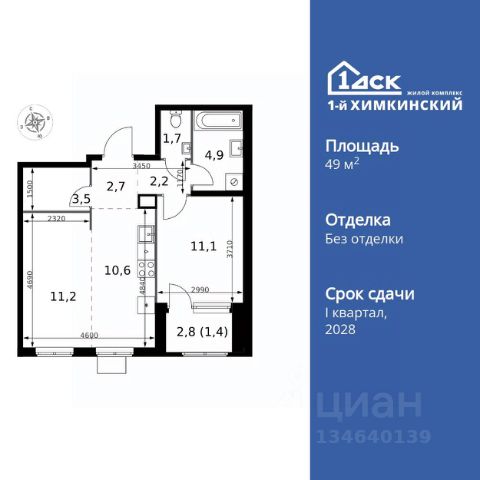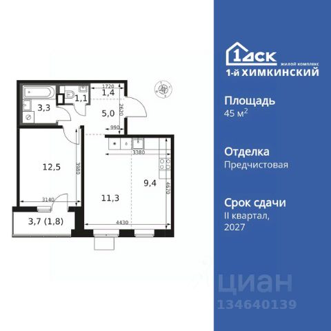 Прямая продажа от застройщика! Жилой Комплекс класса Комфорт. Продаётся 2-к квартира номер 299 общей площадью 47.2 кв.м. на 3-м этаже 12 этажного здания. Отделка Whitebox. Особенности квартиры: - Линейная планировка - максимальная функциональность и удобство. - Просторная ванная - место для расслабления и уединения. - Евроформат - просторное и удобное жилье с отличной планировкой. - Ниша под шкаф - компактное и удобное место для вещей. - Балкон - открытое пространство для отдыха. Квартира с предчистовой отделкой (White box). Вам не придется заниматься черновыми и трудоёмкими работы, а чистовую отделку и дизайн - сделайте на свой вкус. Информация о комплексе: Квартал класса комфорт плюс, где современное городское пространство граничит с удивительной природой вокруг. 1-й Химкинский расположен на территории в 102 га и органично вписан в природное окружение Химкинского леса и канала им. Москвы. В проекте предусмотрена богатая коммерческая инфраструктура с собственным торговым центром, общеобразовательные учреждения и социальные объекты. Изюминкой жилого комплекса будут спортивно-оздоровительный комплекс с термами и SPA и семейный парк развлечений. Транспортная доступность: ЖК "1-й Химкинский" дает возможность выбрать любой способ передвижения как до города, так и до самых разных объектов, которые могут представлять интерес для его жителей. Не важно, какой способ передвижения вы предпочитаете, успевать всегда и везде можно вне зависимости от выбора транспорта. - 8 мин. пешком (800 м) до остановки "Золотая Арка" -10 мин пешком (1 км) до остановки "Поворот на Ивакино" Внутренняя инфраструктура: - Безопасность: закрытые дворы без машин, безбарьерная среда и сквозные подъезды, камеры на детских площадках с возможностью трансляции на смартфоне - Идеальный отдых в кругу семьи: семейный парк развлечений на территории, торговый центр (2-х этажный) общей площадью более 8 тыс. кв. м с фудкортом - Образование: 3 детских сада и современная муниципальная школа на 2450 мест - Спортивная среда: закольцованный веломаршрут с навигацией, спортивный комплекс с термами, закрытый тренажерный зал и зоны ворк-аута - Социальные объекты: поликлиника со станцией скорой помощи, пожарное депо - Подземный паркинг и кладовые помещения на -1 этаже, станция техобслуживания и автомойка на территории Купить 2-комнатную квартиру в ипотеку в микрорайоне Клязьма-Старбеево в городе Химки.