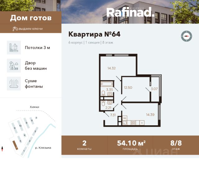 Вашему вниманию предлагается 2-комнатная квартира 57.1 кв.м., на 2 этаже 7 этажного монолитно-кирпичного дома в экологически чистом районе подмосковных Химок, на берегу канала им. Москвы.