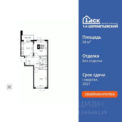Прямая продажа от застройщика! Жилой Комплекс класса Комфорт Плюс. Продаётся 2-к квартира номер 978 общей площадью 58.1 кв.м. на 5-м этаже 17 этажного здания. Без отделки. Особенности квартиры: - Организуем показ в удобное для вас время! - Просторная спальня, в которой можно разместить большую кровать. - Распашная планировка - отличное сочетание удобства и свободы. - Гостевой санузел - комфорт и удобство для ваших гостей. - Можно оборудовать рабочее место - комфорт для работы и учёбы. - Линейная кухня - функциональность и практичность в одном решении. - Лоджия - уютное место для отдыха и тишины. Квартира без отделки. Чистый холст для воплощения интерьера вашей мечты. Информация о комплексе: ЖК "1-й Шереметьевский" в центре Подрезково: 6 минут пешком до ж/д станции и МЦД-3. Яркие лобби, колясочная, лапомойка и гостевой санузел на первом этаже. Два лифта, кладовые и подземный паркинг в корпусах 3-5. Разнообразие планировок с большими кухнями-гостиными, двумя санузлами от 40 кв.м и остеклёнными лоджиями. Умный дом с защитой от протечек и мобильным управлением электроприборами. Транспортная доступность: - Общественный транспорт: До ближайших станций метро Планерной и Войковской около 40-50 минут на автобусе. 6 минут до ЖД станции Подрезково (МЦД-3) - Личный автотранспорт: Удобный выезд на Ленинградское шоссе позволяет быстро добираться до МКАДа и в центр Москвы, до платной трассы М11 и в аэропорт Шереметьево. - 3 минуты до Ленинградского ш. - 10 минут до платной трассы М11 - 15 минут до МКАД - 20 минут до ст. м Войковская - 25 минут до ст. м Планерная Внутренняя инфраструктура: "1-й Шереметьевский": жизнь в шаговой доступности. На первых этажах - магазины со свежими продуктами, кофейни, химчистки и салоны красоты для повседневных нужд без поездок. Собственная школа на 1100 учеников с бассейном и детский сад на 400 малышей с музыкальным залом. Дворы без машин, безопасные игровые площадки и зоны тихого отдыха. Закольцованный веломаршрут с навигацией и парковками. Всё для комфортной жизни без лишних перемещений. Квартира без отделки - чистый холст для вашего интерьера. Продам 2-комнатную квартиру в микрорайоне Подрезково в городе Химки.