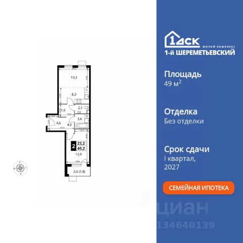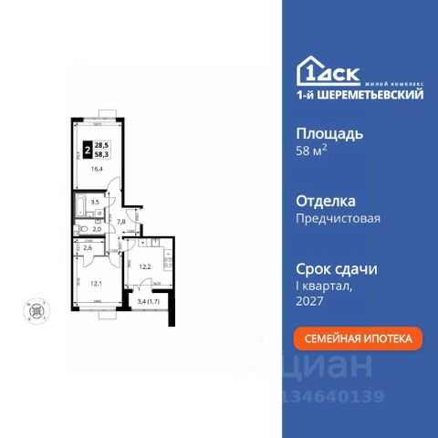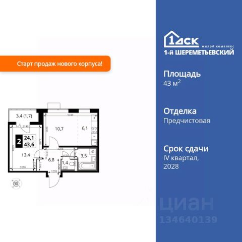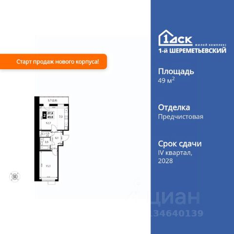 Прямая продажа от застройщика! Жилой Комплекс класса Комфорт Плюс. Продаётся 2-к квартира номер 968 общей площадью 42.7 кв.м. на 3-м этаже 16 этажного здания. Отделка Whitebox. Цена с учётом скидки. Особенности квартиры: - Угловая планировка - больше пространства для ваших идей. - Увеличенная ширина окна/окон - больше света и визуального простора. - Увеличенное количество окон - дополнительное освещение и свежий воздух. - Раздельный санузел - больше удобства для всех членов семьи. - Евроформат - просторное и удобное жилье с отличной планировкой. - Можно оборудовать 2 или более рабочих места - пространство для нескольких человек. - Можно оборудовать рабочее место - комфорт для работы и учёбы. - Просторная мягкая зона - комфорт и уют для отдыха всей семьи. - Кухня-гостиная - идеальное пространство для встреч с близкими. - Возможность добавить спальное место - дополнительный комфорт для гостей. - Ниша под шкаф - компактное и удобное место для вещей. - Лоджия - уютное место для отдыха и тишины. Квартира с предчистовой отделкой (White box). Вам не придется заниматься черновыми и трудоёмкими работы, а чистовую отделку и дизайн - сделайте на свой вкус. Информация о комплексе: ЖК 1-й Шереметьевский расположен в самом центре Подрезково, от него всего 6 минут пешком до одноименной станции ж/д и планируемой к открытию МЦД-3. В комплексе яркие и уютные, лобби, большая колясочная, лапомойка. Благодаря гостевому санузлу на 1 этаже прогулки станут по-настоящему долгими. Два лифта пассажирский и грузовой.Во всех корпусах 1-го Шереметьевского там устроены кладовые, а в корпусах 3-5 есть подземный паркинг. В ЖК 1-й Шереметьевский разнообразие площадей и планировок. Большие кухни-гостиные: в них два окна или больше. Во всех квартирах площадью от 40 кв.м. и выше спроектировано 2 санузла. Большие остекленные лоджии с отделкой. Система Умная квартира, реализованная в 1-м Шереметьевском. В каждой квартире установлены датчики протечек и запорные вентили с электроприводом, которые самостоятельно перекрывают воду в случае аварии. Мобильное приложение управляет группами электропотребителей: даже если вы забыли утюг включенным, можно обесточить его дистанционно. Транспортная доступность: - Общественный транспорт: До ближайших станций метро Планерной и Войковской около 40-50 минут на автобусе. 6 минут до ЖД станции Подрезково (МЦД-3) - Личный автотранспорт: Удобный выезд на Ленинградское шоссе позволяет быстро добираться до МКАДа и в центр Москвы, до платной трассы М11 и в аэропорт Шереметьево. 3 минуты до Ленинградского ш. 10 минут до платной трассы М11 15 минут до МКАД 20 минут до ст. м Войковская 25 минут до ст. м Планерная Внутренняя инфраструктура: 1-й Шереметьевский не только сокращает время, которое вы будете проводить в дороге. Но и предпринимает многое, чтобы вы меньше ездили и чаще ходили. На первых этажах корпусов разместятся фрешмаркеты и пункты выдачи маркетплейсов, салоны красоты и химчистки Продам 2-комнатную квартиру в микрорайоне Подрезково в городе Химки.
