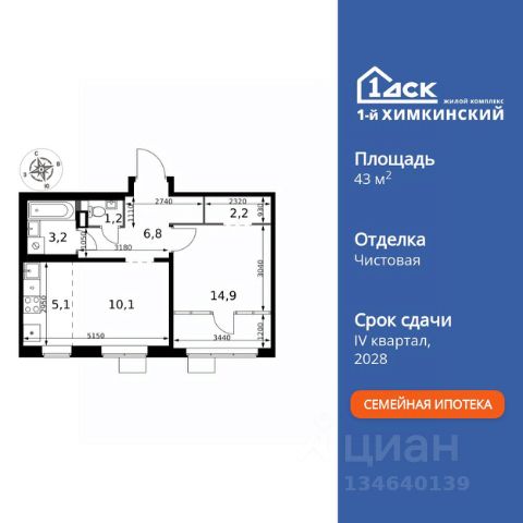 Прямая продажа от застройщика! Жилой Комплекс класса Комфорт. Продаётся 2-к квартира номер 419 общей площадью 49.3 кв.м. на 17-м этаже 17 этажного здания. Предчистовая отделка. Цена с учётом скидки. Особенности квартиры: - Организуем показ в удобное для вас время! - Линейная планировка - максимальная функциональность и удобство. - Раздельный санузел - больше удобства для всех членов семьи. - Увеличенная высота потолков - ощущение простора и легкости. - Просторная кухня - место для семейных ужинов и кулинарных экспериментов. - Гардеробная - удобство для хранения и организации вещей. - Тёплая лоджия - пространство для отдыха в любое время года. Квартира с предчистовой отделкой. Вам не придется заниматься черновыми и трудоёмкими работы, а чистовую отделку и дизайн - сделайте на свой вкус. Информация о комплексе: "1-й Химкинский": гармония современного города и природы на 102 га у Химкинского леса и канала им. Москвы. Развитая инфраструктура: ТЦ, школы, спорткомплекс с термами и СПА, парк развлечений. Идеальный баланс для жизни в окружении зелени и городского комфорта. Транспортная доступность: ЖК "1-й Химкинский" дает возможность выбрать любой способ передвижения как до города, так и до самых разных объектов, которые могут представлять интерес для его жителей. Не важно, какой способ передвижения вы предпочитаете, успевать всегда и везде можно вне зависимости от выбора транспорта. - 8 мин. пешком (800 м) до остановки "Золотая Арка" -10 мин пешком (1 км) до остановки "Поворот на Ивакино" Внутренняя инфраструктура: Безопасность: закрытые дворы без машин, безбарьерная среда, сквозные подъезды, камеры на детских площадках с трансляцией на смартфон. Отдых: семейный парк развлечений, двухэтажный ТЦ 8 000 м² с фудкортом. Образование: 4 детских сада, 2 муниципальные школы. Спорт: закольцованный веломаршрут, спорткомплекс с термами, тренажерный зал, воркаут зоны. Инфраструктура: поликлиника со станцией скорой помощи, пожарное депо. Паркинг: подземный паркинг, кладовые на -1 этаже, СТО и автомойка на территории. Квартира с предчистовой отделкой - ваш дизайн без черновых работ