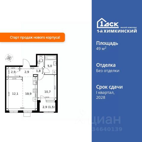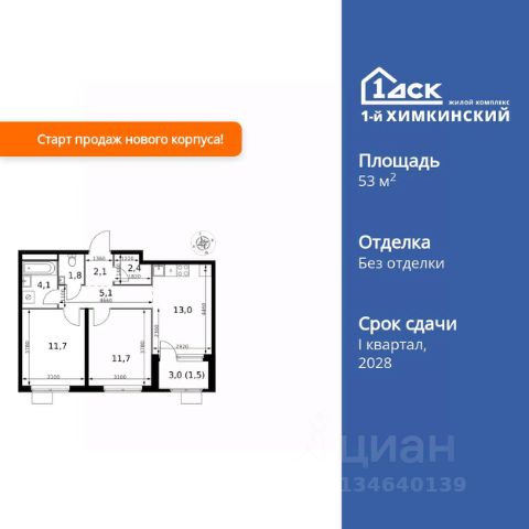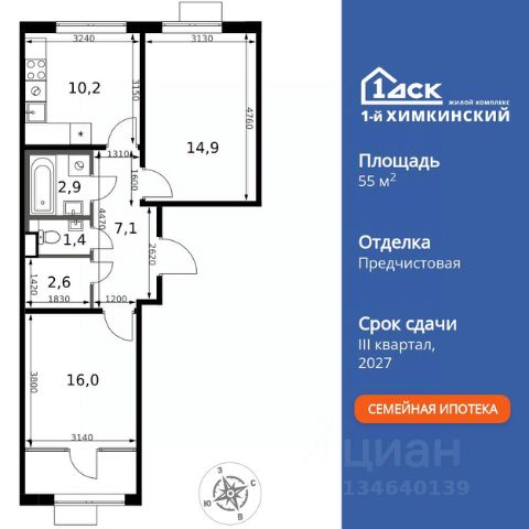 БЕЗ ПЕРВОНАЧАЛЬНОГО ВЗНОСА! ТОЛЬКО 4 ДНЯ ДО 10.02 • Дополнительная скидка 10% • Ставка 10% по стандартной ипотеке для всех без наценок • Ставка 3,5% по семейной ипотеке Успейте купить выгодно! Прямая продажа от застройщика! Жилой Комплекс класса Комфорт. Продаётся 2-к квартира номер 40 общей площадью 46 кв.м. на 4-м этаже 17 этажного здания. Отделка Whitebox. Цена с учётом скидки. Особенности квартиры: - Угловая планировка - больше пространства для ваших идей. - Окно в ванной - натуральное освещение для уюта и комфорта. - Увеличенное количество окон - дополнительное освещение и свежий воздух. - Раздельный санузел - больше удобства для всех членов семьи. - Евроформат - просторное и удобное жилье с отличной планировкой. - Линейная кухня - функциональность и практичность в одном решении. - Гардеробная - удобство для хранения и организации вещей. - Ниша под шкаф - компактное и удобное место для вещей. - Лоджия - уютное место для отдыха и тишины. Квартира с предчистовой отделкой (White box). Вам не придется заниматься черновыми и трудоёмкими работы, а чистовую отделку и дизайн - сделайте на свой вкус. Информация о комплексе: Квартал класса комфорт плюс, где современное городское пространство граничит с удивительной природой вокруг. 1-й Химкинский расположен на территории в 102 га и органично вписан в природное окружение Химкинского леса и канала им. Москвы. В проекте предусмотрена богатая коммерческая инфраструктура с собственным торговым центром, общеобразовательные учреждения и социальные объекты. Изюминкой жилого комплекса будут спортивно-оздоровительный комплекс с термами и SPA и семейный парк развлечений. Транспортная доступность: ЖК "1-й Химкинский" дает возможность выбрать любой способ передвижения как до города, так и до самых разных объектов, которые могут представлять интерес для его жителей. Не важно, какой способ передвижения вы предпочитаете, успевать всегда и везде можно вне зависимости от выбора транспорта. - 8 мин. пешком (800 м) до остановки "Золотая Арка" -10 мин пешком (1 км) до остановки "Поворот на Ивакино" Внутренняя инфраструктура: - Безопасность: закрытые дворы без машин, безбарьерная среда и сквозные подъезды, камеры на детских площадках с возможностью трансляции на смартфоне - Идеальный отдых в кругу семьи: семейный парк развлечений на территории, торговый центр (2-х этажный) общей площадью более 8 тыс. кв. м с фудкортом - Образование: 3 детских сада и современная муниципальная школа на 2450 мест - Спортивная среда: закольцованный веломаршрут с навигацией, спортивный комплекс с термами, закрытый тренажерный зал и зоны ворк-аута - Социальные объекты: поликлиника со станцией скорой помощи, пожарное депо - Подземный паркинг и кладовые помещения на -1 этаже, станция техобслуживания и автомойка на территории Продается 2-комнатная квартира в новостройке в микрорайоне Клязьма-Старбеево в городе Химки.