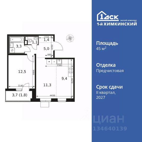 Прямая продажа от застройщика! Жилой Комплекс класса Комфорт. Продаётся 2-к квартира номер 565 общей площадью 43.1 кв.м. на 2-м этаже 16 этажного здания. Отделка Whitebox. Цена с учётом скидки. Особенности квартиры: - Мастер-зона с гардеробной. Просторное место для отдыха и удобного хранения вещей. - Линейная планировка - максимальная функциональность и удобство. - Раздельный санузел - больше удобства для всех членов семьи. - Евроформат - просторное и удобное жилье с отличной планировкой. - Гардеробная - удобство для хранения и организации вещей. - Ниша под шкаф - компактное и удобное место для вещей. - Тёплая лоджия - пространство для отдыха в любое время года. Квартира с предчистовой отделкой (White box). Вам не придется заниматься черновыми и трудоёмкими работы, а чистовую отделку и дизайн - сделайте на свой вкус. Информация о комплексе: Квартал класса комфорт плюс, где современное городское пространство граничит с удивительной природой вокруг. 1-й Химкинский расположен на территории в 102 га и органично вписан в природное окружение Химкинского леса и канала им. Москвы. В проекте предусмотрена богатая коммерческая инфраструктура с собственным торговым центром, общеобразовательные учреждения и социальные объекты. Изюминкой жилого комплекса будут спортивно-оздоровительный комплекс с термами и SPA и семейный парк развлечений. Транспортная доступность: ЖК "1-й Химкинский" дает возможность выбрать любой способ передвижения как до города, так и до самых разных объектов, которые могут представлять интерес для его жителей. Не важно, какой способ передвижения вы предпочитаете, успевать всегда и везде можно вне зависимости от выбора транспорта. - 8 мин. пешком (800 м) до остановки "Золотая Арка" -10 мин пешком (1 км) до остановки "Поворот на Ивакино" Внутренняя инфраструктура: - Безопасность: закрытые дворы без машин, безбарьерная среда и сквозные подъезды, камеры на детских площадках с возможностью трансляции на смартфоне - Идеальный отдых в кругу семьи: семейный парк развлечений на территории, торговый центр (2-х этажный) общей площадью более 8 тыс. кв. м с фудкортом - Образование: 3 детских сада и современная муниципальная школа на 2450 мест - Спортивная среда: закольцованный веломаршрут с навигацией, спортивный комплекс с термами, закрытый тренажерный зал и зоны ворк-аута - Социальные объекты: поликлиника со станцией скорой помощи, пожарное депо - Подземный паркинг и кладовые помещения на -1 этаже, станция техобслуживания и автомойка на территории Продам 2-комнатную квартиру в новостройке в микрорайоне Клязьма-Старбеево в городе Химки.