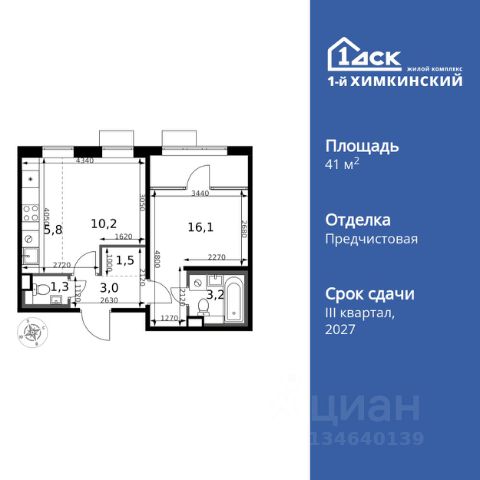 Прямая продажа от застройщика! Жилой Комплекс класса Комфорт. Продаётся 2-к квартира номер 565 общей площадью 43.1 кв.м. на 2-м этаже 16 этажного здания. Отделка Whitebox. Цена с учётом скидки. Особенности квартиры: - Мастер-зона с гардеробной. Просторное место для отдыха и удобного хранения вещей. - Линейная планировка - максимальная функциональность и удобство. - Раздельный санузел - больше удобства для всех членов семьи. - Евроформат - просторное и удобное жилье с отличной планировкой. - Гардеробная - удобство для хранения и организации вещей. - Ниша под шкаф - компактное и удобное место для вещей. - Тёплая лоджия - пространство для отдыха в любое время года. Квартира с предчистовой отделкой (White box). Вам не придется заниматься черновыми и трудоёмкими работы, а чистовую отделку и дизайн - сделайте на свой вкус. Информация о комплексе: Квартал класса комфорт плюс, где современное городское пространство граничит с удивительной природой вокруг. 1-й Химкинский расположен на территории в 102 га и органично вписан в природное окружение Химкинского леса и канала им. Москвы. В проекте предусмотрена богатая коммерческая инфраструктура с собственным торговым центром, общеобразовательные учреждения и социальные объекты. Изюминкой жилого комплекса будут спортивно-оздоровительный комплекс с термами и SPA и семейный парк развлечений. Транспортная доступность: ЖК "1-й Химкинский" дает возможность выбрать любой способ передвижения как до города, так и до самых разных объектов, которые могут представлять интерес для его жителей. Не важно, какой способ передвижения вы предпочитаете, успевать всегда и везде можно вне зависимости от выбора транспорта. - 8 мин. пешком (800 м) до остановки "Золотая Арка" -10 мин пешком (1 км) до остановки "Поворот на Ивакино" Внутренняя инфраструктура: - Безопасность: закрытые дворы без машин, безбарьерная среда и сквозные подъезды, камеры на детских площадках с возможностью трансляции на смартфоне - Идеальный отдых в кругу семьи: семейный парк развлечений на территории, торговый центр (2-х этажный) общей площадью более 8 тыс. кв. м с фудкортом - Образование: 3 детских сада и современная муниципальная школа на 2450 мест - Спортивная среда: закольцованный веломаршрут с навигацией, спортивный комплекс с термами, закрытый тренажерный зал и зоны ворк-аута - Социальные объекты: поликлиника со станцией скорой помощи, пожарное депо - Подземный паркинг и кладовые помещения на -1 этаже, станция техобслуживания и автомойка на территории Продается 2-комнатная квартира в новостройке в квартале Международный в микрорайоне Клязьма-Старбеево.