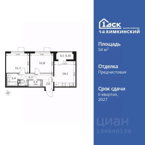 УСПЕЙ ПО СЕМЕЙНОЙ ИПОТЕКЕ БЕЗ НАЦЕНКИ! От 25 000 рублей в месяц! Прямая продажа от застройщика! Жилой Комплекс класса Комфорт. Продаётся 2-к квартира номер 11 общей площадью 48 кв.м. на 2-м этаже 17 этажного здания. Отделка Whitebox. Цена с учётом скидки. Особенности квартиры: - Угловая планировка - больше пространства для ваших идей. - Окно в ванной - натуральное освещение для уюта и комфорта. - Увеличенное количество окон - дополнительное освещение и свежий воздух. - Раздельный санузел - больше удобства для всех членов семьи. - Евроформат - просторное и удобное жилье с отличной планировкой. - Гардеробная - удобство для хранения и организации вещей. - Ниша под шкаф - компактное и удобное место для вещей. - Просторная лоджия - идеальное место для уютных вечеров. Квартира с предчистовой отделкой (White box). Вам не придется заниматься черновыми и трудоёмкими работы, а чистовую отделку и дизайн - сделайте на свой вкус. Информация о комплексе: Квартал класса комфорт плюс, где современное городское пространство граничит с удивительной природой вокруг. 1-й Химкинский расположен на территории в 102 га и органично вписан в природное окружение Химкинского леса и канала им. Москвы. В проекте предусмотрена богатая коммерческая инфраструктура с собственным торговым центром, общеобразовательные учреждения и социальные объекты. Изюминкой жилого комплекса будут спортивно-оздоровительный комплекс с термами и SPA и семейный парк развлечений. Транспортная доступность: ЖК "1-й Химкинский" дает возможность выбрать любой способ передвижения как до города, так и до самых разных объектов, которые могут представлять интерес для его жителей. Не важно, какой способ передвижения вы предпочитаете, успевать всегда и везде можно вне зависимости от выбора транспорта. - 8 мин. пешком (800 м) до остановки "Золотая Арка" -10 мин пешком (1 км) до остановки "Поворот на Ивакино" Внутренняя инфраструктура: - Безопасность: закрытые дворы без машин, безбарьерная среда и сквозные подъезды, камеры на детских площадках с возможностью трансляции на смартфоне - Идеальный отдых в кругу семьи: семейный парк развлечений на территории, торговый центр (2-х этажный) общей площадью более 8 тыс. кв. м с фудкортом - Образование: 3 детских сада и современная муниципальная школа на 2450 мест - Спортивная среда: закольцованный веломаршрут с навигацией, спортивный комплекс с термами, закрытый тренажерный зал и зоны ворк-аута - Социальные объекты: поликлиника со станцией скорой помощи, пожарное депо - Подземный паркинг и кладовые помещения на -1 этаже, станция техобслуживания и автомойка на территории Продам 2-комнатную квартиру в новостройке с отделкой в микрорайоне Клязьма-Старбеево в городе Химки.