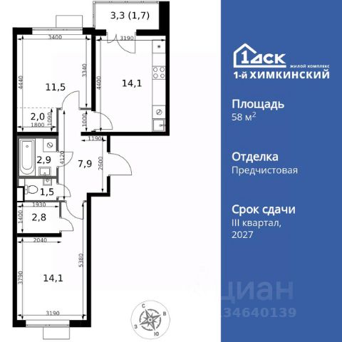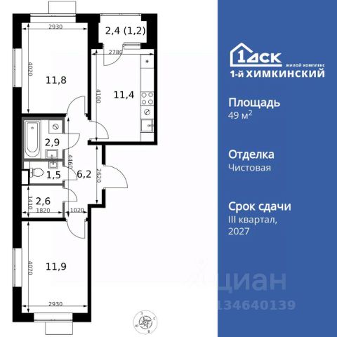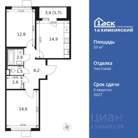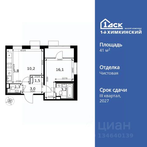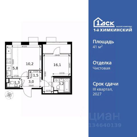 УСПЕЙ ПО СЕМЕЙНОЙ ИПОТЕКЕ БЕЗ НАЦЕНКИ! От 25 000 рублей в месяц! Прямая продажа от застройщика! Жилой Комплекс класса Комфорт. Продаётся 2-к квартира номер 433 общей площадью 41.1 кв.м. на 11-м этаже 17 этажного здания. Чистовая отделка. Цена с учётом скидки. Особенности квартиры: - Линейная планировка - максимальная функциональность и удобство. - Гостевой санузел - комфорт и удобство для ваших гостей. - Евроформат - просторное и удобное жилье с отличной планировкой. - Гардеробная - удобство для хранения и организации вещей. - Ниша под шкаф - компактное и удобное место для вещей. - Тёплая лоджия - пространство для отдыха в любое время года. Информация о комплексе: Квартал класса комфорт плюс, где современное городское пространство граничит с удивительной природой вокруг. 1-й Химкинский расположен на территории в 102 га и органично вписан в природное окружение Химкинского леса и канала им. Москвы. В проекте предусмотрена богатая коммерческая инфраструктура с собственным торговым центром, общеобразовательные учреждения и социальные объекты. Изюминкой жилого комплекса будут спортивно-оздоровительный комплекс с термами и SPA и семейный парк развлечений. Транспортная доступность: ЖК "1-й Химкинский" дает возможность выбрать любой способ передвижения как до города, так и до самых разных объектов, которые могут представлять интерес для его жителей. Не важно, какой способ передвижения вы предпочитаете, успевать всегда и везде можно вне зависимости от выбора транспорта. - 8 мин. пешком (800 м) до остановки "Золотая Арка" -10 мин пешком (1 км) до остановки "Поворот на Ивакино" Внутренняя инфраструктура: - Безопасность: закрытые дворы без машин, безбарьерная среда и сквозные подъезды, камеры на детских площадках с возможностью трансляции на смартфоне - Идеальный отдых в кругу семьи: семейный парк развлечений на территории, торговый центр (2-х этажный) общей площадью более 8 тыс. кв. м с фудкортом - Образование: 3 детских сада и современная муниципальная школа на 2450 мест - Спортивная среда: закольцованный веломаршрут с навигацией, спортивный комплекс с термами, закрытый тренажерный зал и зоны ворк-аута - Социальные объекты: поликлиника со станцией скорой помощи, пожарное депо - Подземный паркинг и кладовые помещения на -1 этаже, станция техобслуживания и автомойка на территории Продам 2-комнатную квартиру в новостройке с отделкой в микрорайоне Клязьма-Старбеево в городе Химки.