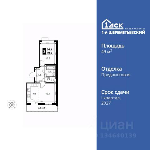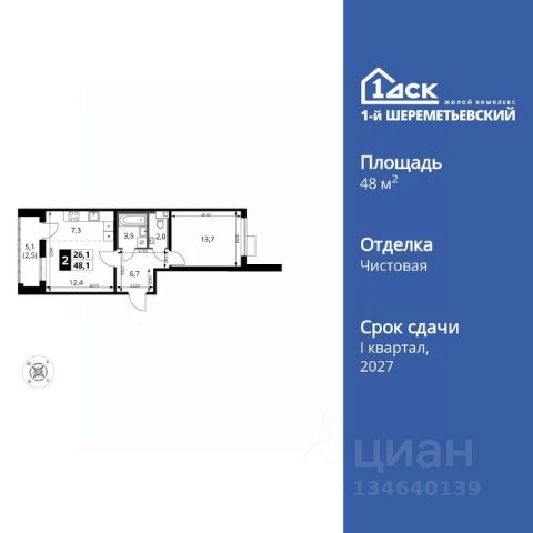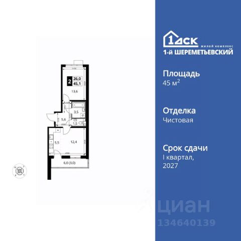 Прямая продажа от застройщика! Жилой Комплекс класса Комфорт Плюс. Продаётся 2-к квартира номер 557 общей площадью 46.4 кв.м. на 9-м этаже 16 этажного здания. Отделка Whitebox. Цена с учётом скидки. Особенности квартиры: - Просторная спальня, в которой можно разместить большую кровать. - Распашная планировка - отличное сочетание удобства и свободы. - Раздельный санузел - больше удобства для всех членов семьи. - Евроформат - просторное и удобное жилье с отличной планировкой. - Можно оборудовать рабочее место - комфорт для работы и учёбы. - Кухня-гостиная - идеальное пространство для встреч с близкими. - Возможность добавить спальное место - дополнительный комфорт для гостей. - Просторная лоджия - идеальное место для уютных вечеров. Квартира с предчистовой отделкой (White box). Вам не придется заниматься черновыми и трудоёмкими работы, а чистовую отделку и дизайн - сделайте на свой вкус. Информация о комплексе: ЖК 1-й Шереметьевский расположен в самом центре Подрезково, от него всего 6 минут пешком до одноименной станции ж/д и планируемой к открытию МЦД-3. В комплексе яркие и уютные, лобби, большая колясочная, лапомойка. Благодаря гостевому санузлу на 1 этаже прогулки станут по-настоящему долгими. Два лифта пассажирский и грузовой.Во всех корпусах 1-го Шереметьевского там устроены кладовые, а в корпусах 3-5 есть подземный паркинг. В ЖК 1-й Шереметьевский разнообразие площадей и планировок. Большие кухни-гостиные: в них два окна или больше. Во всех квартирах площадью от 40 кв.м. и выше спроектировано 2 санузла. Большие остекленные лоджии с отделкой. Система Умная квартира, реализованная в 1-м Шереметьевском. В каждой квартире установлены датчики протечек и запорные вентили с электроприводом, которые самостоятельно перекрывают воду в случае аварии. Мобильное приложение управляет группами электропотребителей: даже если вы забыли утюг включенным, можно обесточить его дистанционно. Транспортная доступность: - Общественный транспорт: До ближайших станций метро Планерной и Войковской около 40-50 минут на автобусе. 6 минут до ЖД станции Подрезково (МЦД-3) - Личный автотранспорт: Удобный выезд на Ленинградское шоссе позволяет быстро добираться до МКАДа и в центр Москвы, до платной трассы М11 и в аэропорт Шереметьево. 3 минуты до Ленинградского ш. 10 минут до платной трассы М11 15 минут до МКАД 20 минут до ст. м Войковская 25 минут до ст. м Планерная Внутренняя инфраструктура: 1-й Шереметьевский не только сокращает время, которое вы будете проводить в дороге. Но и предпринимает многое, чтобы вы меньше ездили и чаще ходили. На первых этажах корпусов разместятся фрешмаркеты и пункты выдачи маркетплейсов, салоны красоты и химчистки, кофейни и пекарни всё, что необходимо изо дня в день, но не заслуживает отдельной поездки на машине или такси. В квартале будут построены собственные школа и детский сад. Школа рассчитана на 1100 учеников. В ней будут 25-метровый бассейн и просторный атриум, медиат 2-комнатная квартира в новостройке с отделкой в микрорайоне Подрезково в городе Химки.