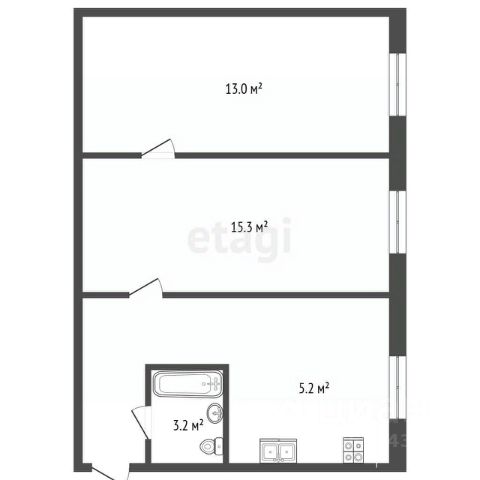 Площадь 40,3 кв.м.+ балкон 3 кв.м.