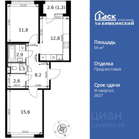 Прямая продажа от застройщика! Жилой Комплекс класса Комфорт. Продаётся 2-к квартира номер 565 общей площадью 43.1 кв.м. на 2-м этаже 16 этажного дома. Отделка Whitebox. Цена с учётом скидки! Особенности квартиры: - Мастер-зона с гардеробной. Просторное место для отдыха и удобного хранения вещей. - Линейная планировка - максимальная функциональность и удобство. - Раздельный санузел - больше удобства для всех членов семьи. - Евроформат - просторное и удобное жилье с отличной планировкой. - Гардеробная - удобство для хранения и организации вещей. - Ниша под шкаф - компактное и удобное место для вещей. - Тёплая лоджия - пространство для отдыха в любое время года. Квартира с предчистовой отделкой (White box). Вам не придется заниматься черновыми и трудоёмкими работы, а чистовую отделку и дизайн - сделайте на свой вкус. Информация о комплексе: Квартал класса комфорт плюс, где современное городское пространство граничит с удивительной природой вокруг. 1-й Химкинский расположен на территории в 102 га и органично вписан в природное окружение Химкинского леса и канала им. Москвы. В проекте предусмотрена богатая коммерческая инфраструктура с собственным торговым центром, общеобразовательные учреждения и социальные объекты. Изюминкой жилого комплекса будут спортивно-оздоровительный комплекс с термами и SPA и семейный парк развлечений. Транспортная доступность: ЖК "1-й Химкинский" дает возможность выбрать любой способ передвижения как до города, так и до самых разных объектов, которые могут представлять интерес для его жителей. Не важно, какой способ передвижения вы предпочитаете, успевать всегда и везде можно вне зависимости от выбора транспорта. - 8 мин. пешком (800 м) до остановки "Золотая Арка" -10 мин пешком (1 км) до остановки "Поворот на Ивакино" Внутренняя инфраструктура: - Безопасность: закрытые дворы без машин, безбарьерная среда и сквозные подъезды, камеры на детских площадках с возможностью трансляции на смартфоне - Идеальный отдых в кругу семьи: семейный парк развлечений на территории, торговый центр (2-х этажный) общей площадью более 8 тыс. кв. м с фудкортом - Образование: 3 детских сада и современная муниципальная школа на 2450 мест - Спортивная среда: закольцованный веломаршрут с навигацией, спортивный комплекс с термами, закрытый тренажерный зал и зоны ворк-аута - Социальные объекты: поликлиника со станцией скорой помощи, пожарное депо - Подземный паркинг и кладовые помещения на -1 этаже, станция техобслуживания и автомойка на территории