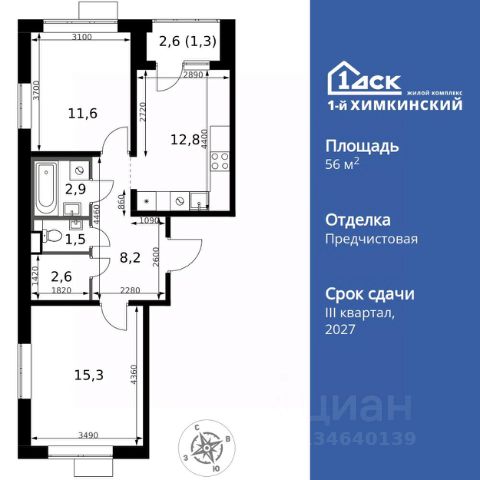 УСПЕЙ ПО СЕМЕЙНОЙ ИПОТЕКЕ БЕЗ НАЦЕНКИ! От 25 000 рублей в месяц! Прямая продажа от застройщика! Жилой Комплекс класса Комфорт. Продаётся 2-к квартира номер 466 общей площадью 49.5 кв.м. на 15-м этаже 17 этажного здания. Чистовая отделка. Цена с учётом скидки. Особенности квартиры: - Просторная спальня, в которой можно разместить большую кровать. - Мало квартир на этаже - уединение и тишина. - Окно в ванной - натуральное освещение для уюта и комфорта. - Увеличенное количество окон - дополнительное освещение и свежий воздух. - Раздельный санузел - больше удобства для всех членов семьи. - Гардеробная - удобство для хранения и организации вещей. - Лоджия - уютное место для отдыха и тишины. Информация о комплексе: Квартал класса комфорт плюс, где современное городское пространство граничит с удивительной природой вокруг. 1-й Химкинский расположен на территории в 102 га и органично вписан в природное окружение Химкинского леса и канала им. Москвы. В проекте предусмотрена богатая коммерческая инфраструктура с собственным торговым центром, общеобразовательные учреждения и социальные объекты. Изюминкой жилого комплекса будут спортивно-оздоровительный комплекс с термами и SPA и семейный парк развлечений. Транспортная доступность: ЖК "1-й Химкинский" дает возможность выбрать любой способ передвижения как до города, так и до самых разных объектов, которые могут представлять интерес для его жителей. Не важно, какой способ передвижения вы предпочитаете, успевать всегда и везде можно вне зависимости от выбора транспорта. - 8 мин. пешком (800 м) до остановки "Золотая Арка" -10 мин пешком (1 км) до остановки "Поворот на Ивакино" Внутренняя инфраструктура: - Безопасность: закрытые дворы без машин, безбарьерная среда и сквозные подъезды, камеры на детских площадках с возможностью трансляции на смартфоне - Идеальный отдых в кругу семьи: семейный парк развлечений на территории, торговый центр (2-х этажный) общей площадью более 8 тыс. кв. м с фудкортом - Образование: 3 детских сада и современная муниципальная школа на 2450 мест - Спортивная среда: закольцованный веломаршрут с навигацией, спортивный комплекс с термами, закрытый тренажерный зал и зоны ворк-аута - Социальные объекты: поликлиника со станцией скорой помощи, пожарное депо - Подземный паркинг и кладовые помещения на -1 этаже, станция техобслуживания и автомойка на территории
