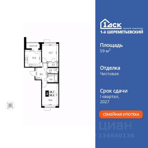 ДОПОЛНИТЕЛЬНАЯ СКИДКА ДО 10% В ОФИСЕ ПРОДАЖ! Прямая продажа от застройщика! Жилой Комплекс класса Комфорт Плюс. Продаётся 2-к квартира номер 521 общей площадью 58.3 кв.м. на 7-м этаже 16 этажного здания. Чистовая отделка. Цена с учётом скидки. Особенности квартиры: - Мастер-зона с гардеробной. Просторное место для отдыха и удобного хранения вещей. - Просторная спальня, в которой можно разместить большую кровать. - Распашная планировка - отличное сочетание удобства и свободы. - Увеличенная ширина окна/окон - больше света и визуального простора. - Раздельный санузел - больше удобства для всех членов семьи. - Можно оборудовать 2 или более рабочих места - пространство для нескольких человек. - Можно оборудовать рабочее место - комфорт для работы и учёбы. - Гардеробная - удобство для хранения и организации вещей. - Лоджия - уютное место для отдыха и тишины. Информация о комплексе: ЖК 1-й Шереметьевский расположен в самом центре Подрезково, от него всего 6 минут пешком до одноименной станции ж/д и планируемой к открытию МЦД-3. В комплексе яркие и уютные, лобби, большая колясочная, лапомойка. Благодаря гостевому санузлу на 1 этаже прогулки станут по-настоящему долгими. Два лифта пассажирский и грузовой.Во всех корпусах 1-го Шереметьевского там устроены кладовые, а в корпусах 3-5 есть подземный паркинг. В ЖК 1-й Шереметьевский разнообразие площадей и планировок. Большие кухни-гостиные: в них два окна или больше. Во всех квартирах площадью от 40 кв.м. и выше спроектировано 2 санузла. Большие остекленные лоджии с отделкой. Система Умная квартира, реализованная в 1-м Шереметьевском. В каждой квартире установлены датчики протечек и запорные вентили с электроприводом, которые самостоятельно перекрывают воду в случае аварии. Мобильное приложение управляет группами электропотребителей: даже если вы забыли утюг включенным, можно обесточить его дистанционно. Транспортная доступность: - Общественный транспорт: До ближайших станций метро Планерной и Войковской около 40-50 минут на автобусе. 6 минут до ЖД станции Подрезково (МЦД-3) - Личный автотранспорт: Удобный выезд на Ленинградское шоссе позволяет быстро добираться до МКАДа и в центр Москвы, до платной трассы М11 и в аэропорт Шереметьево. 3 минуты до Ленинградского ш. 10 минут до платной трассы М11 15 минут до МКАД 20 минут до ст. м Войковская 25 минут до ст. м Планерная Внутренняя инфраструктура: 1-й Шереметьевский не только сокращает время, которое вы будете проводить в дороге. Но и предпринимает многое, чтобы вы меньше ездили и чаще ходили. На первых этажах корпусов разместятся фрешмаркеты и пункты выдачи маркетплейсов, салоны красоты и химчистки, кофейни и пекарни всё, что необходимо изо дня в день, но не заслуживает отдельной поездки на машине или такси. В квартале будут построены собственные школа и детский сад. Школа рассчитана на 1100 учеников. В ней будут 25-метровый бассейн и просторный атриум, медиатека. Детский сад рассчитана на 400
