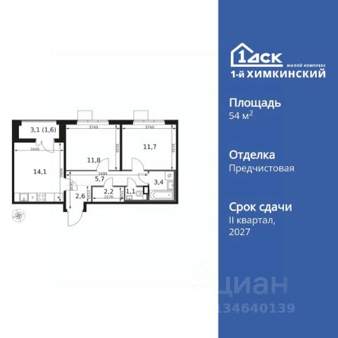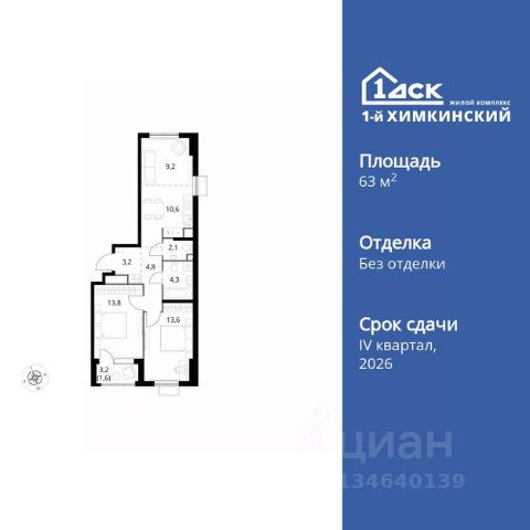 УСПЕЙ ПО СЕМЕЙНОЙ ИПОТЕКЕ БЕЗ НАЦЕНКИ! От 25 000 рублей в месяц! Прямая продажа от застройщика! Жилой Комплекс класса Комфорт. Продаётся 2-к квартира номер 65 общей площадью 51.8 кв.м. на 10-м этаже 17 этажного здания. Без отделки. Особенности квартиры: - Просторная спальня, в которой можно разместить большую кровать. - Линейная планировка - максимальная функциональность и удобство. - Линейная кухня - функциональность и практичность в одном решении. - Гардеробная - удобство для хранения и организации вещей. - Лоджия - уютное место для отдыха и тишины. Информация о комплексе: Квартал класса комфорт плюс, где современное городское пространство граничит с удивительной природой вокруг. 1-й Химкинский расположен на территории в 102 га и органично вписан в природное окружение Химкинского леса и канала им. Москвы. В проекте предусмотрена богатая коммерческая инфраструктура с собственным торговым центром, общеобразовательные учреждения и социальные объекты. Изюминкой жилого комплекса будут спортивно-оздоровительный комплекс с термами и SPA и семейный парк развлечений. Транспортная доступность: ЖК "1-й Химкинский" дает возможность выбрать любой способ передвижения как до города, так и до самых разных объектов, которые могут представлять интерес для его жителей. Не важно, какой способ передвижения вы предпочитаете, успевать всегда и везде можно вне зависимости от выбора транспорта. - 8 мин. пешком (800 м) до остановки "Золотая Арка" -10 мин пешком (1 км) до остановки "Поворот на Ивакино" Внутренняя инфраструктура: - Безопасность: закрытые дворы без машин, безбарьерная среда и сквозные подъезды, камеры на детских площадках с возможностью трансляции на смартфоне - Идеальный отдых в кругу семьи: семейный парк развлечений на территории, торговый центр (2-х этажный) общей площадью более 8 тыс. кв. м с фудкортом - Образование: 3 детских сада и современная муниципальная школа на 2450 мест - Спортивная среда: закольцованный веломаршрут с навигацией, спортивный комплекс с термами, закрытый тренажерный зал и зоны ворк-аута - Социальные объекты: поликлиника со станцией скорой помощи, пожарное депо - Подземный паркинг и кладовые помещения на -1 этаже, станция техобслуживания и автомойка на территории