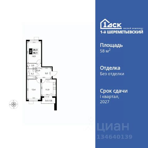 Прямая продажа от застройщика! Жилой Комплекс класса Комфорт Плюс. Продаётся 2-к квартира номер 406 общей площадью 49.5 кв.м. на 8-м этаже 17 этажного здания. Без отделки. Особенности квартиры: - Мастер-зона с гардеробной. Просторное место для отдыха и удобного хранения вещей. - Просторная спальня, в которой можно разместить большую кровать. - Линейная планировка - максимальная функциональность и удобство. - Раздельный санузел - больше удобства для всех членов семьи. - Евроформат - просторное и удобное жилье с отличной планировкой. - Можно оборудовать рабочее место - комфорт для работы и учёбы. - Кухня-гостиная - идеальное пространство для встреч с близкими. - Возможность добавить спальное место - дополнительный комфорт для гостей. - Гардеробная - удобство для хранения и организации вещей. - Ниша под шкаф - компактное и удобное место для вещей. - Лоджия - уютное место для отдыха и тишины. Информация о комплексе: ЖК 1-й Шереметьевский расположен в самом центре Подрезково, от него всего 6 минут пешком до одноименной станции ж/д и планируемой к открытию МЦД-3. В комплексе яркие и уютные, лобби, большая колясочная, лапомойка. Благодаря гостевому санузлу на 1 этаже прогулки станут по-настоящему долгими. Два лифта пассажирский и грузовой.Во всех корпусах 1-го Шереметьевского там устроены кладовые, а в корпусах 3-5 есть подземный паркинг. В ЖК 1-й Шереметьевский разнообразие площадей и планировок. Большие кухни-гостиные: в них два окна или больше. Во всех квартирах площадью от 40 кв.м. и выше спроектировано 2 санузла. Большие остекленные лоджии с отделкой. Система Умная квартира, реализованная в 1-м Шереметьевском. В каждой квартире установлены датчики протечек и запорные вентили с электроприводом, которые самостоятельно перекрывают воду в случае аварии. Мобильное приложение управляет группами электропотребителей: даже если вы забыли утюг включенным, можно обесточить его дистанционно. Транспортная доступность: - Общественный транспорт: До ближайших станций метро Планерной и Войковской около 40-50 минут на автобусе. 6 минут до ЖД станции Подрезково (МЦД-3) - Личный автотранспорт: Удобный выезд на Ленинградское шоссе позволяет быстро добираться до МКАДа и в центр Москвы, до платной трассы М11 и в аэропорт Шереметьево. 3 минуты до Ленинградского ш. 10 минут до платной трассы М11 15 минут до МКАД 20 минут до ст. м Войковская 25 минут до ст. м Планерная Внутренняя инфраструктура: 1-й Шереметьевский не только сокращает время, которое вы будете проводить в дороге. Но и предпринимает многое, чтобы вы меньше ездили и чаще ходили. На первых этажах корпусов разместятся фрешмаркеты и пункты выдачи маркетплейсов, салоны красоты и химчистки, кофейни и пекарни всё, что необходимо изо дня в день, но не заслуживает отдельной поездки на машине или такси. В квартале будут построены собственные школа и детский сад. Школа рассчитана на 1100 учеников. В ней будут 25-метровый бассейн и просторный атриум, мед