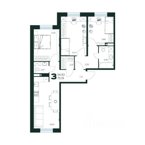 • ✓ В базе Циан 17 3-комнатных квартир без ремонта в микрорайоне Сходня в городе Химки