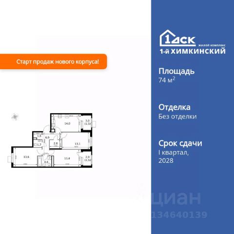 Прямая продажа от застройщика! Жилой Комплекс класса Комфорт. Продаётся 3-к квартира номер 100 общей площадью 67.8 кв.м. на 10-м этаже 10 этажного здания. Без отделки. Цена с учётом скидки. Особенности квартиры: - Организуем показ в удобное для вас время! - Угловая планировка - больше пространства для ваших идей. - Увеличенное количество окон - дополнительное освещение и свежий воздух. - Гостевой санузел - комфорт и удобство для ваших гостей. - Евроформат - просторное и удобное жилье с отличной планировкой. - Увеличенная высота потолков - ощущение простора и легкости. - Линейная кухня - функциональность и практичность в одном решении. - Гардеробная - удобство для хранения и организации вещей. - Ниша под шкаф - компактное и удобное место для вещей. - Лоджия - уютное место для отдыха и тишины. Квартира без отделки. Чистый холст для воплощения интерьера вашей мечты. Информация о комплексе: "1-й Химкинский": гармония современного города и природы на 102 га у Химкинского леса и канала им. Москвы. Развитая инфраструктура: ТЦ, школы, спорткомплекс с термами и СПА, парк развлечений. Идеальный баланс для жизни в окружении зелени и городского комфорта. Транспортная доступность: ЖК "1-й Химкинский" дает возможность выбрать любой способ передвижения как до города, так и до самых разных объектов, которые могут представлять интерес для его жителей. Не важно, какой способ передвижения вы предпочитаете, успевать всегда и везде можно вне зависимости от выбора транспорта. - 8 мин. пешком (800 м) до остановки "Золотая Арка" -10 мин пешком (1 км) до остановки "Поворот на Ивакино" Внутренняя инфраструктура: Безопасность: закрытые дворы без машин, безбарьерная среда, сквозные подъезды, камеры на детских площадках с трансляцией на смартфон. Отдых: семейный парк развлечений, двухэтажный ТЦ 8 000 м² с фудкортом. Образование: 4 детских сада, 2 муниципальные школы. Спорт: закольцованный веломаршрут, спорткомплекс с термами, тренажерный зал, воркаут зоны. Инфраструктура: поликлиника со станцией скорой помощи, пожарное депо. Паркинг: подземный паркинг, кладовые на -1 этаже, СТО и автомойка на территории. Квартира без отделки - чистый холст для вашего интерьера.