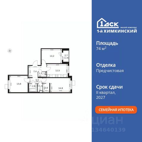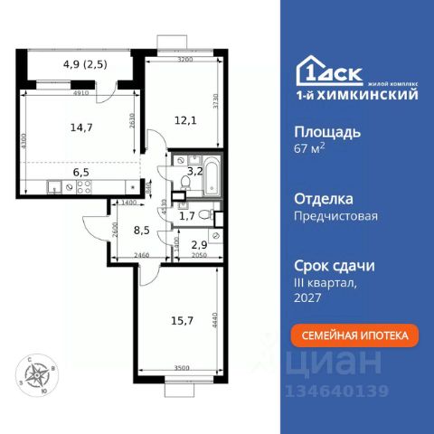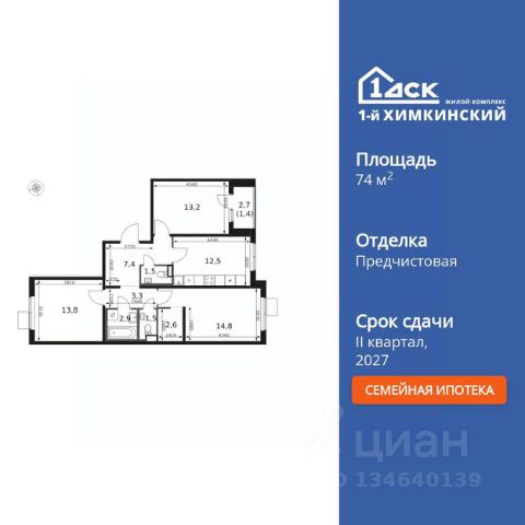 Прямая продажа от застройщика! Жилой Комплекс класса Комфорт. Продаётся 3-к квартира номер 603 общей площадью 67.8 кв.м. на 12-м этаже 16 этажного здания. Отделка Whitebox. Цена с учётом скидки. Особенности квартиры: - Просторная спальня, в которой можно разместить большую кровать. - Распашная планировка - отличное сочетание удобства и свободы. - Гостевой санузел - комфорт и удобство для ваших гостей. - Евроформат - просторное и удобное жилье с отличной планировкой. - Гардеробная - удобство для хранения и организации вещей. - Просторная лоджия - идеальное место для уютных вечеров. Квартира с предчистовой отделкой (White box). Вам не придется заниматься черновыми и трудоёмкими работы, а чистовую отделку и дизайн - сделайте на свой вкус. Информация о комплексе: Квартал класса комфорт плюс, где современное городское пространство граничит с удивительной природой вокруг. 1-й Химкинский расположен на территории в 102 га и органично вписан в природное окружение Химкинского леса и канала им. Москвы. В проекте предусмотрена богатая коммерческая инфраструктура с собственным торговым центром, общеобразовательные учреждения и социальные объекты. Изюминкой жилого комплекса будут спортивно-оздоровительный комплекс с термами и SPA и семейный парк развлечений. Транспортная доступность: ЖК "1-й Химкинский" дает возможность выбрать любой способ передвижения как до города, так и до самых разных объектов, которые могут представлять интерес для его жителей. Не важно, какой способ передвижения вы предпочитаете, успевать всегда и везде можно вне зависимости от выбора транспорта. - 8 мин. пешком (800 м) до остановки "Золотая Арка" -10 мин пешком (1 км) до остановки "Поворот на Ивакино" Внутренняя инфраструктура: - Безопасность: закрытые дворы без машин, безбарьерная среда и сквозные подъезды, камеры на детских площадках с возможностью трансляции на смартфоне - Идеальный отдых в кругу семьи: семейный парк развлечений на территории, торговый центр (2-х этажный) общей площадью более 8 тыс. кв. м с фудкортом - Образование: 3 детских сада и современная муниципальная школа на 2450 мест - Спортивная среда: закольцованный веломаршрут с навигацией, спортивный комплекс с термами, закрытый тренажерный зал и зоны ворк-аута - Социальные объекты: поликлиника со станцией скорой помощи, пожарное депо - Подземный паркинг и кладовые помещения на -1 этаже, станция техобслуживания и автомойка на территории
