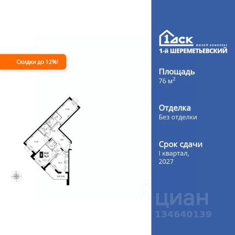 Прямая продажа от застройщика! Жилой Комплекс класса Комфорт Плюс. Продаётся 3-к квартира номер 666 общей площадью 76.9 кв.м. на 12-м этаже 17 этажного здания. Без отделки. Особенности квартиры: - Мастер-зона с санузлом и гардеробной. Всё для вашего комфорта и удобства, включая личный санузел и гардероб. - Просторная спальня, в которой можно разместить большую кровать. - Распашная планировка - отличное сочетание удобства и свободы. - Гостевой санузел - комфорт и удобство для ваших гостей. - Душ помимо ванной - дополнительное удобство для вашей семьи. - Можно оборудовать рабочее место - комфорт для работы и учёбы. - Линейная кухня - функциональность и практичность в одном решении. - Гардеробная - удобство для хранения и организации вещей. - Просторная лоджия - идеальное место для уютных вечеров. Информация о комплексе: ЖК 1-й Шереметьевский расположен в самом центре Подрезково, от него всего 6 минут пешком до одноименной станции ж/д и планируемой к открытию МЦД-3. В комплексе яркие и уютные, лобби, большая колясочная, лапомойка. Благодаря гостевому санузлу на 1 этаже прогулки станут по-настоящему долгими. Два лифта пассажирский и грузовой.Во всех корпусах 1-го Шереметьевского там устроены кладовые, а в корпусах 3-5 есть подземный паркинг. В ЖК 1-й Шереметьевский разнообразие площадей и планировок. Большие кухни-гостиные: в них два окна или больше. Во всех квартирах площадью от 40 кв.м. и выше спроектировано 2 санузла. Большие остекленные лоджии с отделкой. Система Умная квартира, реализованная в 1-м Шереметьевском. В каждой квартире установлены датчики протечек и запорные вентили с электроприводом, которые самостоятельно перекрывают воду в случае аварии. Мобильное приложение управляет группами электропотребителей: даже если вы забыли утюг включенным, можно обесточить его дистанционно. Транспортная доступность: - Общественный транспорт: До ближайших станций метро Планерной и Войковской около 40-50 минут на автобусе. 6 минут до ЖД станции Подрезково (МЦД-3) - Личный автотранспорт: Удобный выезд на Ленинградское шоссе позволяет быстро добираться до МКАДа и в центр Москвы, до платной трассы М11 и в аэропорт Шереметьево. 3 минуты до Ленинградского ш. 10 минут до платной трассы М11 15 минут до МКАД 20 минут до ст. м Войковская 25 минут до ст. м Планерная Внутренняя инфраструктура: 1-й Шереметьевский не только сокращает время, которое вы будете проводить в дороге. Но и предпринимает многое, чтобы вы меньше ездили и чаще ходили. На первых этажах корпусов разместятся фрешмаркеты и пункты выдачи маркетплейсов, салоны красоты и химчистки, кофейни и пекарни всё, что необходимо изо дня в день, но не заслуживает отдельной поездки на машине или такси. В квартале будут построены собственные школа и детский сад. Школа рассчитана на 1100 учеников. В ней будут 25-метровый бассейн и просторный атриум, медиатека. Детский сад рассчитана на 400 малышей. Здесь стильный дизайн и комфортные группы, большой