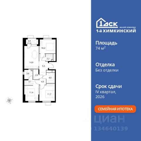 Прямая продажа от застройщика! Жилой Комплекс класса Комфорт. Продаётся 3-к квартира номер 611 общей площадью 67.8 кв.м. на 14-м этаже 16 этажного здания. Предчистовая отделка. Цена с учётом скидки. Особенности квартиры: - Организуем показ в удобное для вас время! - Просторная спальня, в которой можно разместить большую кровать. - Распашная планировка - отличное сочетание удобства и свободы. - Гостевой санузел - комфорт и удобство для ваших гостей. - Евроформат - просторное и удобное жилье с отличной планировкой. - Гардеробная - удобство для хранения и организации вещей. - Просторная лоджия - идеальное место для уютных вечеров. Квартира с предчистовой отделкой. Вам не придется заниматься черновыми и трудоёмкими работы, а чистовую отделку и дизайн - сделайте на свой вкус. Информация о комплексе: "1-й Химкинский": гармония современного города и природы на 102 га у Химкинского леса и канала им. Москвы. Развитая инфраструктура: ТЦ, школы, спорткомплекс с термами и СПА, парк развлечений. Идеальный баланс для жизни в окружении зелени и городского комфорта. Транспортная доступность: ЖК "1-й Химкинский" дает возможность выбрать любой способ передвижения как до города, так и до самых разных объектов, которые могут представлять интерес для его жителей. Не важно, какой способ передвижения вы предпочитаете, успевать всегда и везде можно вне зависимости от выбора транспорта. - 8 мин. пешком (800 м) до остановки "Золотая Арка" -10 мин пешком (1 км) до остановки "Поворот на Ивакино" Внутренняя инфраструктура: Безопасность: закрытые дворы без машин, безбарьерная среда, сквозные подъезды, камеры на детских площадках с трансляцией на смартфон. Отдых: семейный парк развлечений, двухэтажный ТЦ 8 000 м² с фудкортом. Образование: 4 детских сада, 2 муниципальные школы. Спорт: закольцованный веломаршрут, спорткомплекс с термами, тренажерный зал, воркаут зоны. Инфраструктура: поликлиника со станцией скорой помощи, пожарное депо. Паркинг: подземный паркинг, кладовые на -1 этаже, СТО и автомойка на территории. Квартира с предчистовой отделкой - ваш дизайн без черновых работ