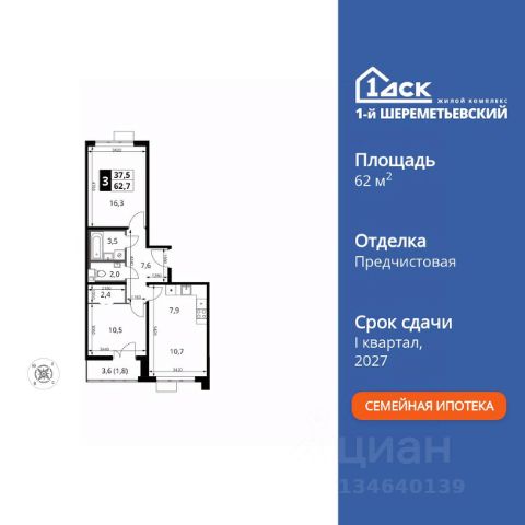 Прямая продажа от застройщика! Жилой Комплекс класса Комфорт. Продаётся 3-к квартира номер 611 общей площадью 67.8 кв.м. на 14-м этаже 16 этажного здания. Предчистовая отделка. Цена с учётом скидки. Особенности квартиры: - Организуем показ в удобное для вас время! - Просторная спальня, в которой можно разместить большую кровать. - Распашная планировка - отличное сочетание удобства и свободы. - Гостевой санузел - комфорт и удобство для ваших гостей. - Евроформат - просторное и удобное жилье с отличной планировкой. - Гардеробная - удобство для хранения и организации вещей. - Просторная лоджия - идеальное место для уютных вечеров. Квартира с предчистовой отделкой. Вам не придется заниматься черновыми и трудоёмкими работы, а чистовую отделку и дизайн - сделайте на свой вкус. Информация о комплексе: "1-й Химкинский": гармония современного города и природы на 102 га у Химкинского леса и канала им. Москвы. Развитая инфраструктура: ТЦ, школы, спорткомплекс с термами и СПА, парк развлечений. Идеальный баланс для жизни в окружении зелени и городского комфорта. Транспортная доступность: ЖК "1-й Химкинский" дает возможность выбрать любой способ передвижения как до города, так и до самых разных объектов, которые могут представлять интерес для его жителей. Не важно, какой способ передвижения вы предпочитаете, успевать всегда и везде можно вне зависимости от выбора транспорта. - 8 мин. пешком (800 м) до остановки "Золотая Арка" -10 мин пешком (1 км) до остановки "Поворот на Ивакино" Внутренняя инфраструктура: Безопасность: закрытые дворы без машин, безбарьерная среда, сквозные подъезды, камеры на детских площадках с трансляцией на смартфон. Отдых: семейный парк развлечений, двухэтажный ТЦ 8 000 м² с фудкортом. Образование: 4 детских сада, 2 муниципальные школы. Спорт: закольцованный веломаршрут, спорткомплекс с термами, тренажерный зал, воркаут зоны. Инфраструктура: поликлиника со станцией скорой помощи, пожарное депо. Паркинг: подземный паркинг, кладовые на -1 этаже, СТО и автомойка на территории. Квартира с предчистовой отделкой - ваш дизайн без черновых работ