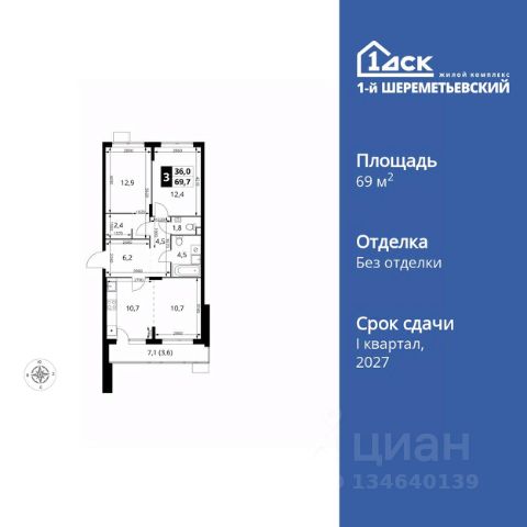 Прямая продажа от застройщика! Жилой Комплекс класса Комфорт Плюс. Продаётся 3-к квартира номер 537 общей площадью 69.7 кв.м. на 15-м этаже 17 этажного дома. Без отделки. Особенности квартиры: - Мастер-зона с гардеробной. Просторное место для отдыха и удобного хранения вещей. - Просторная спальня, в которой можно разместить большую кровать. - Распашная планировка - отличное сочетание удобства и свободы. - Увеличенная ширина окна/окон - больше света и визуального простора. - Гостевой санузел - комфорт и удобство для ваших гостей. - Евроформат - просторное и удобное жилье с отличной планировкой. - Можно оборудовать рабочее место - комфорт для работы и учёбы. - Кухня-гостиная - идеальное пространство для встреч с близкими. - Линейная кухня - функциональность и практичность в одном решении. - Гардеробная - удобство для хранения и организации вещей. - Ниша под шкаф - компактное и удобное место для вещей. - Просторная лоджия - идеальное место для уютных вечеров. Информация о комплексе: ЖК 1-й Шереметьевский расположен в самом центре Подрезково, от него всего 6 минут пешком до одноименной станции ж/д и планируемой к открытию МЦД-3. В комплексе яркие и уютные, лобби, большая колясочная, лапомойка. Благодаря гостевому санузлу на 1 этаже прогулки станут по-настоящему долгими. Два лифта пассажирский и грузовой.Во всех корпусах 1-го Шереметьевского там устроены кладовые, а в корпусах 3-5 есть подземный паркинг. В ЖК 1-й Шереметьевский разнообразие площадей и планировок. Большие кухни-гостиные: в них два окна или больше. Во всех квартирах площадью от 40 кв.м. и выше спроектировано 2 санузла. Большие остекленные лоджии с отделкой. Система Умная квартира, реализованная в 1-м Шереметьевском. В каждой квартире установлены датчики протечек и запорные вентили с электроприводом, которые самостоятельно перекрывают воду в случае аварии. Мобильное приложение управляет группами электропотребителей: даже если вы забыли утюг включенным, можно обесточить его дистанционно. Транспортная доступность: - Общественный транспорт: До ближайших станций метро Планерной и Войковской около 40-50 минут на автобусе. 6 минут до ЖД станции Подрезково (МЦД-3) - Личный автотранспорт: Удобный выезд на Ленинградское шоссе позволяет быстро добираться до МКАДа и в центр Москвы, до платной трассы М11 и в аэропорт Шереметьево. 3 минуты до Ленинградского ш. 10 минут до платной трассы М11 15 минут до МКАД 20 минут до ст. м Войковская 25 минут до ст. м Планерная Внутренняя инфраструктура: 1-й Шереметьевский не только сокращает время, которое вы будете проводить в дороге. Но и предпринимает многое, чтобы вы меньше ездили и чаще ходили. На первых этажах корпусов разместятся фрешмаркеты и пункты выдачи маркетплейсов, салоны красоты и химчистки, кофейни и пекарни всё, что необходимо изо дня в день, но не заслуживает отдельной поездки на машине или такси. В квартале будут построены собственные школа и детский сад. Школа рассчитана на 1