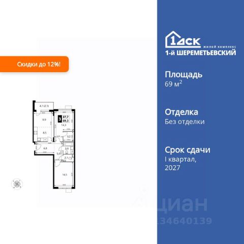 Прямая продажа от застройщика! Жилой Комплекс класса Комфорт Плюс. Продаётся 3-к квартира номер 473 общей площадью 74.9 кв.м. на 16-м этаже 17 этажного здания. Без отделки. Особенности квартиры: - Мастер-зона с гардеробной. Просторное место для отдыха и удобного хранения вещей. - Просторная спальня, в которой можно разместить большую кровать. - Угловая планировка - больше пространства для ваших идей. - Увеличенная ширина окна/окон - больше света и визуального простора. - Просторная ванная - место для расслабления и уединения. - Возможность установить вторую раковину или биде - удобство для всей семьи. - Гостевой санузел - комфорт и удобство для ваших гостей. - Душ помимо ванной - дополнительное удобство для вашей семьи. - Можно оборудовать рабочее место - комфорт для работы и учёбы. - Просторная мягкая зона - комфорт и уют для отдыха всей семьи. - Линейная кухня - функциональность и практичность в одном решении. - Гардеробная - удобство для хранения и организации вещей. - Ниша под шкаф - компактное и удобное место для вещей. - Лоджия - уютное место для отдыха и тишины. Информация о комплексе: ЖК 1-й Шереметьевский расположен в самом центре Подрезково, от него всего 6 минут пешком до одноименной станции ж/д и планируемой к открытию МЦД-3. В комплексе яркие и уютные, лобби, большая колясочная, лапомойка. Благодаря гостевому санузлу на 1 этаже прогулки станут по-настоящему долгими. Два лифта пассажирский и грузовой.Во всех корпусах 1-го Шереметьевского там устроены кладовые, а в корпусах 3-5 есть подземный паркинг. В ЖК 1-й Шереметьевский разнообразие площадей и планировок. Большие кухни-гостиные: в них два окна или больше. Во всех квартирах площадью от 40 кв.м. и выше спроектировано 2 санузла. Большие остекленные лоджии с отделкой. Система Умная квартира, реализованная в 1-м Шереметьевском. В каждой квартире установлены датчики протечек и запорные вентили с электроприводом, которые самостоятельно перекрывают воду в случае аварии. Мобильное приложение управляет группами электропотребителей: даже если вы забыли утюг включенным, можно обесточить его дистанционно. Транспортная доступность: - Общественный транспорт: До ближайших станций метро Планерной и Войковской около 40-50 минут на автобусе. 6 минут до ЖД станции Подрезково (МЦД-3) - Личный автотранспорт: Удобный выезд на Ленинградское шоссе позволяет быстро добираться до МКАДа и в центр Москвы, до платной трассы М11 и в аэропорт Шереметьево. 3 минуты до Ленинградского ш. 10 минут до платной трассы М11 15 минут до МКАД 20 минут до ст. м Войковская 25 минут до ст. м Планерная Внутренняя инфраструктура: 1-й Шереметьевский не только сокращает время, которое вы будете проводить в дороге. Но и предпринимает многое, чтобы вы меньше ездили и чаще ходили. На первых этажах корпусов разместятся фрешмаркеты и пункты выдачи маркетплейсов, салоны красоты и химчистки, кофейни и пекарни всё, что необходимо изо дня в день, но не заслуживает отде