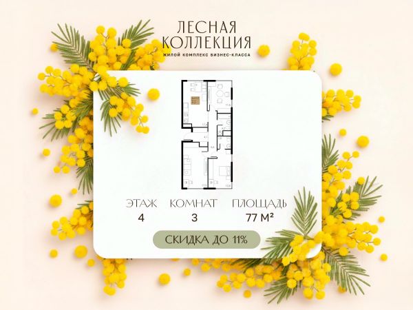 Выгода до 11%. Продажа напрямую от застройщика в жилом комплексе Лесная Коллекция! 3-комнатная квартира на 4-этаже, площадью 77-квм. Лесная Коллекция это продуманный жилой комплекс для тех, кто хочет жить в комфортной городской среде и при этом быть рядом с природой. Удачное расположение, развитая инфраструктура и закрытая территория делают проект удобным для повседневной жизни. Удобная локация и транспорт • Быстрый выезд на Путилковское шоссе • Близость станции метро "Планерная" • Три железнодорожные станции рядом: Химки, Левобережная, Ховрино • Более 40 автобусных маршрутов Локация позволяет легко добираться как в центр города, так и в соседние районы. Территория и окружение • Соседство с престижным районом Куркино • Закрытая благоустроенная территория без сквозного движения • Пространства для прогулок и занятий спортом • Двор примыкает к лесному массиву • Архитектура комплекса выдержана в сдержанном, респектабельном стиле • До 70% окон ориентированы на парк Квартиры и планировки • Удобные и функциональные планировочные решения • Формат комфорт-класса по разумной цене • Максимум естественного света за счёт удачного расположения корпусов Инфраструктура внутри комплекса • Детский сад на территории на 140 мест • МФЦ для решения повседневных вопросов • Коммерческие помещения на первых этажах • Магазины, кафе и салоны красоты прямо в доме • Собственный паркинг рядом с домом Всё необходимое рядом • 78 муниципальных и 42 частных детских сада • 40 школ, включая гимназии и лицеи • 6 колледжей и техникумов • 5 вузов поблизости • Крупные торговые центры и рынки в удобной доступности О застройщике Проекты застройщика "Град Девелопмент" — это более 600 тыс. кв. м реализованной недвижимости, включая клубные форматы и жильё бизнес-класса. Компания известна качеством строительства и соблюдением сроков.
