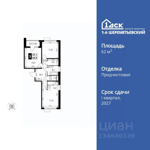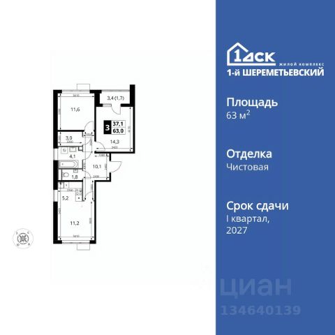 Прямая продажа от застройщика! Жилой Комплекс класса Комфорт Плюс. Продаётся 3-к квартира номер 1055 общей площадью 63 кв.м. на 6-м этаже 16 этажного здания. Чистовая отделка. Цена с учётом скидки. Особенности квартиры: - Просторная спальня, в которой можно разместить большую кровать. - Распашная планировка - отличное сочетание удобства и свободы. - Увеличенная ширина окна/окон - больше света и визуального простора. - Увеличенное количество окон - дополнительное освещение и свежий воздух. - Раздельный санузел - больше удобства для всех членов семьи. - Евроформат - просторное и удобное жилье с отличной планировкой. - Можно оборудовать 2 или более рабочих места - пространство для нескольких человек. - Можно оборудовать рабочее место - комфорт для работы и учёбы. - Кухня-гостиная - идеальное пространство для встреч с близкими. - Возможность добавить спальное место - дополнительный комфорт для гостей. - Гардеробная - удобство для хранения и организации вещей. - Лоджия - уютное место для отдыха и тишины. Информация о комплексе: ЖК 1-й Шереметьевский расположен в самом центре Подрезково, от него всего 6 минут пешком до одноименной станции ж/д и планируемой к открытию МЦД-3. В комплексе яркие и уютные, лобби, большая колясочная, лапомойка. Благодаря гостевому санузлу на 1 этаже прогулки станут по-настоящему долгими. Два лифта пассажирский и грузовой.Во всех корпусах 1-го Шереметьевского там устроены кладовые, а в корпусах 3-5 есть подземный паркинг. В ЖК 1-й Шереметьевский разнообразие площадей и планировок. Большие кухни-гостиные: в них два окна или больше. Во всех квартирах площадью от 40 кв.м. и выше спроектировано 2 санузла. Большие остекленные лоджии с отделкой. Система Умная квартира, реализованная в 1-м Шереметьевском. В каждой квартире установлены датчики протечек и запорные вентили с электроприводом, которые самостоятельно перекрывают воду в случае аварии. Мобильное приложение управляет группами электропотребителей: даже если вы забыли утюг включенным, можно обесточить его дистанционно. Транспортная доступность: - Общественный транспорт: До ближайших станций метро Планерной и Войковской около 40-50 минут на автобусе. 6 минут до ЖД станции Подрезково (МЦД-3) - Личный автотранспорт: Удобный выезд на Ленинградское шоссе позволяет быстро добираться до МКАДа и в центр Москвы, до платной трассы М11 и в аэропорт Шереметьево. 3 минуты до Ленинградского ш. 10 минут до платной трассы М11 15 минут до МКАД 20 минут до ст. м Войковская 25 минут до ст. м Планерная Внутренняя инфраструктура: 1-й Шереметьевский не только сокращает время, которое вы будете проводить в дороге. Но и предпринимает многое, чтобы вы меньше ездили и чаще ходили. На первых этажах корпусов разместятся фрешмаркеты и пункты выдачи маркетплейсов, салоны красоты и химчистки, кофейни и пекарни всё, что необходимо изо дня в день, но не заслуживает отдельной поездки на машине или такси. В квартале будут построены собственны