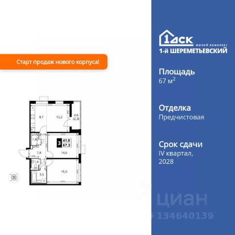 • ИПОТЕКА 10% ДЛЯ ВСЕХ БЕЗ НАЦЕНОК • ДОСТУПНО ПО СЕМЕЙНОЙ ИПОТЕКЕ Прямая продажа от застройщика! Жилой Комплекс класса Комфорт. Продаётся 3-к квартира номер 224 общей площадью 79.8 кв.м. на 7-м этаже 8 этажного здания. Без отделки. Цена с учётом скидки. Особенности квартиры: - Мастер-зона с гардеробной. Просторное место для отдыха и удобного хранения вещей. - Просторная спальня, в которой можно разместить большую кровать. - Распашная планировка - отличное сочетание удобства и свободы. - Гостевой санузел - комфорт и удобство для ваших гостей. - Просторная кухня - место для семейных ужинов и кулинарных экспериментов. - Гардеробная - удобство для хранения и организации вещей. - Ниша под шкаф - компактное и удобное место для вещей. - Лоджия - уютное место для отдыха и тишины. Информация о комплексе: Квартал класса комфорт плюс, где современное городское пространство граничит с удивительной природой вокруг. 1-й Химкинский расположен на территории в 102 га и органично вписан в природное окружение Химкинского леса и канала им. Москвы. В проекте предусмотрена богатая коммерческая инфраструктура с собственным торговым центром, общеобразовательные учреждения и социальные объекты. Изюминкой жилого комплекса будут спортивно-оздоровительный комплекс с термами и SPA и семейный парк развлечений. Транспортная доступность: ЖК "1-й Химкинский" дает возможность выбрать любой способ передвижения как до города, так и до самых разных объектов, которые могут представлять интерес для его жителей. Не важно, какой способ передвижения вы предпочитаете, успевать всегда и везде можно вне зависимости от выбора транспорта. - 8 мин. пешком (800 м) до остановки "Золотая Арка" -10 мин пешком (1 км) до остановки "Поворот на Ивакино" Внутренняя инфраструктура: - Безопасность: закрытые дворы без машин, безбарьерная среда и сквозные подъезды, камеры на детских площадках с возможностью трансляции на смартфоне - Идеальный отдых в кругу семьи: семейный парк развлечений на территории, торговый центр (2-х этажный) общей площадью более 8 тыс. кв. м с фудкортом - Образование: 3 детских сада и современная муниципальная школа на 2450 мест - Спортивная среда: закольцованный веломаршрут с навигацией, спортивный комплекс с термами, закрытый тренажерный зал и зоны ворк-аута - Социальные объекты: поликлиника со станцией скорой помощи, пожарное депо - Подземный паркинг и кладовые помещения на -1 этаже, станция техобслуживания и автомойка на территории