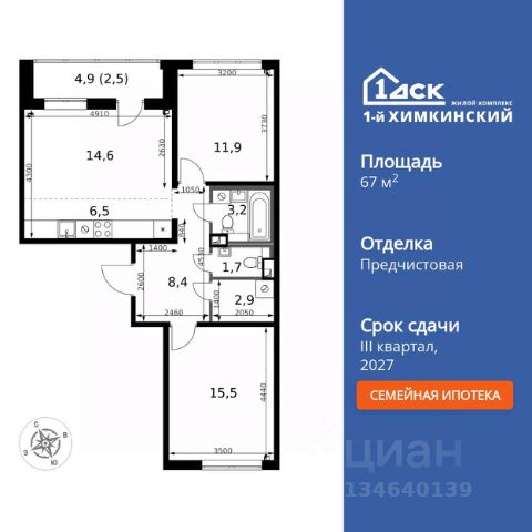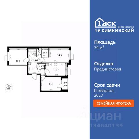Прямая продажа от застройщика! Жилой Комплекс класса Комфорт. Продаётся 3-к квартира номер 563 общей площадью 67.2 кв.м. на 2-м этаже 16 этажного здания. Отделка Whitebox. Цена с учётом скидки. Особенности квартиры: - Просторная спальня, в которой можно разместить большую кровать. - Распашная планировка - отличное сочетание удобства и свободы. - Гостевой санузел - комфорт и удобство для ваших гостей. - Евроформат - просторное и удобное жилье с отличной планировкой. - Гардеробная - удобство для хранения и организации вещей. - Просторная лоджия - идеальное место для уютных вечеров. Квартира с предчистовой отделкой (White box). Вам не придется заниматься черновыми и трудоёмкими работы, а чистовую отделку и дизайн - сделайте на свой вкус. Информация о комплексе: Квартал класса комфорт плюс, где современное городское пространство граничит с удивительной природой вокруг. 1-й Химкинский расположен на территории в 102 га и органично вписан в природное окружение Химкинского леса и канала им. Москвы. В проекте предусмотрена богатая коммерческая инфраструктура с собственным торговым центром, общеобразовательные учреждения и социальные объекты. Изюминкой жилого комплекса будут спортивно-оздоровительный комплекс с термами и SPA и семейный парк развлечений. Транспортная доступность: ЖК "1-й Химкинский" дает возможность выбрать любой способ передвижения как до города, так и до самых разных объектов, которые могут представлять интерес для его жителей. Не важно, какой способ передвижения вы предпочитаете, успевать всегда и везде можно вне зависимости от выбора транспорта. - 8 мин. пешком (800 м) до остановки "Золотая Арка" -10 мин пешком (1 км) до остановки "Поворот на Ивакино" Внутренняя инфраструктура: - Безопасность: закрытые дворы без машин, безбарьерная среда и сквозные подъезды, камеры на детских площадках с возможностью трансляции на смартфоне - Идеальный отдых в кругу семьи: семейный парк развлечений на территории, торговый центр (2-х этажный) общей площадью более 8 тыс. кв. м с фудкортом - Образование: 3 детских сада и современная муниципальная школа на 2450 мест - Спортивная среда: закольцованный веломаршрут с навигацией, спортивный комплекс с термами, закрытый тренажерный зал и зоны ворк-аута - Социальные объекты: поликлиника со станцией скорой помощи, пожарное депо - Подземный паркинг и кладовые помещения на -1 этаже, станция техобслуживания и автомойка на территории Купить 3-комнатную квартиру в ипотеку в городском округе Химках Московской области.