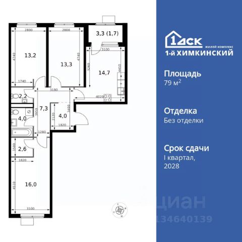 Прямая продажа от застройщика! Жилой Комплекс класса Комфорт. Продаётся 3-к квартира номер 563 общей площадью 67.2 кв.м. на 2-м этаже 16 этажного здания. Отделка Whitebox. Цена с учётом скидки. Особенности квартиры: - Просторная спальня, в которой можно разместить большую кровать. - Распашная планировка - отличное сочетание удобства и свободы. - Гостевой санузел - комфорт и удобство для ваших гостей. - Евроформат - просторное и удобное жилье с отличной планировкой. - Гардеробная - удобство для хранения и организации вещей. - Просторная лоджия - идеальное место для уютных вечеров. Квартира с предчистовой отделкой (White box). Вам не придется заниматься черновыми и трудоёмкими работы, а чистовую отделку и дизайн - сделайте на свой вкус. Информация о комплексе: Квартал класса комфорт плюс, где современное городское пространство граничит с удивительной природой вокруг. 1-й Химкинский расположен на территории в 102 га и органично вписан в природное окружение Химкинского леса и канала им. Москвы. В проекте предусмотрена богатая коммерческая инфраструктура с собственным торговым центром, общеобразовательные учреждения и социальные объекты. Изюминкой жилого комплекса будут спортивно-оздоровительный комплекс с термами и SPA и семейный парк развлечений. Транспортная доступность: ЖК "1-й Химкинский" дает возможность выбрать любой способ передвижения как до города, так и до самых разных объектов, которые могут представлять интерес для его жителей. Не важно, какой способ передвижения вы предпочитаете, успевать всегда и везде можно вне зависимости от выбора транспорта. - 8 мин. пешком (800 м) до остановки "Золотая Арка" -10 мин пешком (1 км) до остановки "Поворот на Ивакино" Внутренняя инфраструктура: - Безопасность: закрытые дворы без машин, безбарьерная среда и сквозные подъезды, камеры на детских площадках с возможностью трансляции на смартфоне - Идеальный отдых в кругу семьи: семейный парк развлечений на территории, торговый центр (2-х этажный) общей площадью более 8 тыс. кв. м с фудкортом - Образование: 3 детских сада и современная муниципальная школа на 2450 мест - Спортивная среда: закольцованный веломаршрут с навигацией, спортивный комплекс с термами, закрытый тренажерный зал и зоны ворк-аута - Социальные объекты: поликлиника со станцией скорой помощи, пожарное депо - Подземный паркинг и кладовые помещения на -1 этаже, станция техобслуживания и автомойка на территории 3-комнатная квартира в ипотеку в микрорайоне Клязьма-Старбеево в городе Химки.