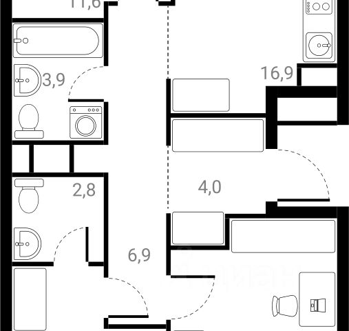 • ✓ В базе Циан 64 3-комнатных квартир в кирпично-монолитном доме в Химках