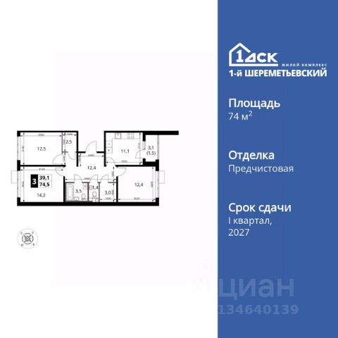 УСПЕЙ ПО СЕМЕЙНОЙ ИПОТЕКЕ БЕЗ НАЦЕНКИ! Квартиры в готовом квартале от 30 000 рублей в месяц! Прямая продажа от застройщика! Жилой Комплекс класса Комфорт Плюс. Продаётся 3-к квартира номер 625 общей площадью 74 кв.м. на 17-м этаже 17 этажного здания. Без отделки. Особенности квартиры: - Мастер-зона с гардеробной. Просторное место для отдыха и удобного хранения вещей. - Просторная спальня, в которой можно разместить большую кровать. - Распашная планировка - отличное сочетание удобства и свободы. - Увеличенная ширина окна/окон - больше света и визуального простора. - Гостевой санузел - комфорт и удобство для ваших гостей. - Евроформат - просторное и удобное жилье с отличной планировкой. - Увеличенная высота потолков - ощущение простора и легкости. - Можно оборудовать рабочее место - комфорт для работы и учёбы. - Просторная мягкая зона - комфорт и уют для отдыха всей семьи. - Кухня-гостиная - идеальное пространство для встреч с близкими. - Линейная кухня - функциональность и практичность в одном решении. - Возможность добавить спальное место - дополнительный комфорт для гостей. - Гардеробная - удобство для хранения и организации вещей. - Просторная лоджия - идеальное место для уютных вечеров. Информация о комплексе: ЖК 1-й Шереметьевский расположен в самом центре Подрезково, от него всего 6 минут пешком до одноименной станции ж/д и планируемой к открытию МЦД-3. В комплексе яркие и уютные, лобби, большая колясочная, лапомойка. Благодаря гостевому санузлу на 1 этаже прогулки станут по-настоящему долгими. Два лифта пассажирский и грузовой.Во всех корпусах 1-го Шереметьевского там устроены кладовые, а в корпусах 3-5 есть подземный паркинг. В ЖК 1-й Шереметьевский разнообразие площадей и планировок. Большие кухни-гостиные: в них два окна или больше. Во всех квартирах площадью от 40 кв.м. и выше спроектировано 2 санузла. Большие остекленные лоджии с отделкой. Система Умная квартира, реализованная в 1-м Шереметьевском. В каждой квартире установлены датчики протечек и запорные вентили с электроприводом, которые самостоятельно перекрывают воду в случае аварии. Мобильное приложение управляет группами электропотребителей: даже если вы забыли утюг включенным, можно обесточить его дистанционно. Транспортная доступность: - Общественный транспорт: До ближайших станций метро Планерной и Войковской около 40-50 минут на автобусе. 6 минут до ЖД станции Подрезково (МЦД-3) - Личный автотранспорт: Удобный выезд на Ленинградское шоссе позволяет быстро добираться до МКАДа и в центр Москвы, до платной трассы М11 и в аэропорт Шереметьево. 3 минуты до Ленинградского ш. 10 минут до платной трассы М11 15 минут до МКАД 20 минут до ст. м Войковская 25 минут до ст. м Планерная Внутренняя инфраструктура: 1-й Шереметьевский не только сокращает время, которое вы будете проводить в дороге. Но и предпринимает многое, чтобы вы меньше ездили и чаще ходили. На первых этажах корпусов разместятся фрешмаркеты и пункты выд