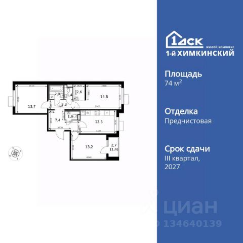 УСПЕЙ ПО СЕМЕЙНОЙ ИПОТЕКЕ БЕЗ НАЦЕНКИ! От 25 000 рублей в месяц! Прямая продажа от застройщика! Жилой Комплекс класса Комфорт. Продаётся 3-к квартира номер 511 общей площадью 67.6 кв.м. на 7-м этаже 7 этажного здания. Отделка Whitebox. Цена с учётом скидки. Особенности квартиры: - Просторная спальня, в которой можно разместить большую кровать. - Распашная планировка - отличное сочетание удобства и свободы. - Гостевой санузел - комфорт и удобство для ваших гостей. - Евроформат - просторное и удобное жилье с отличной планировкой. - Увеличенная высота потолков - ощущение простора и легкости. - Гардеробная - удобство для хранения и организации вещей. - Просторная лоджия - идеальное место для уютных вечеров. Квартира с предчистовой отделкой (White box). Вам не придется заниматься черновыми и трудоёмкими работы, а чистовую отделку и дизайн - сделайте на свой вкус. Информация о комплексе: Квартал класса комфорт плюс, где современное городское пространство граничит с удивительной природой вокруг. 1-й Химкинский расположен на территории в 102 га и органично вписан в природное окружение Химкинского леса и канала им. Москвы. В проекте предусмотрена богатая коммерческая инфраструктура с собственным торговым центром, общеобразовательные учреждения и социальные объекты. Изюминкой жилого комплекса будут спортивно-оздоровительный комплекс с термами и SPA и семейный парк развлечений. Транспортная доступность: ЖК "1-й Химкинский" дает возможность выбрать любой способ передвижения как до города, так и до самых разных объектов, которые могут представлять интерес для его жителей. Не важно, какой способ передвижения вы предпочитаете, успевать всегда и везде можно вне зависимости от выбора транспорта. - 8 мин. пешком (800 м) до остановки "Золотая Арка" -10 мин пешком (1 км) до остановки "Поворот на Ивакино" Внутренняя инфраструктура: - Безопасность: закрытые дворы без машин, безбарьерная среда и сквозные подъезды, камеры на детских площадках с возможностью трансляции на смартфоне - Идеальный отдых в кругу семьи: семейный парк развлечений на территории, торговый центр (2-х этажный) общей площадью более 8 тыс. кв. м с фудкортом - Образование: 3 детских сада и современная муниципальная школа на 2450 мест - Спортивная среда: закольцованный веломаршрут с навигацией, спортивный комплекс с термами, закрытый тренажерный зал и зоны ворк-аута - Социальные объекты: поликлиника со станцией скорой помощи, пожарное депо - Подземный паркинг и кладовые помещения на -1 этаже, станция техобслуживания и автомойка на территории Продается 3-комнатная квартира в новостройке в квартале Международный в микрорайоне Клязьма-Старбеево.